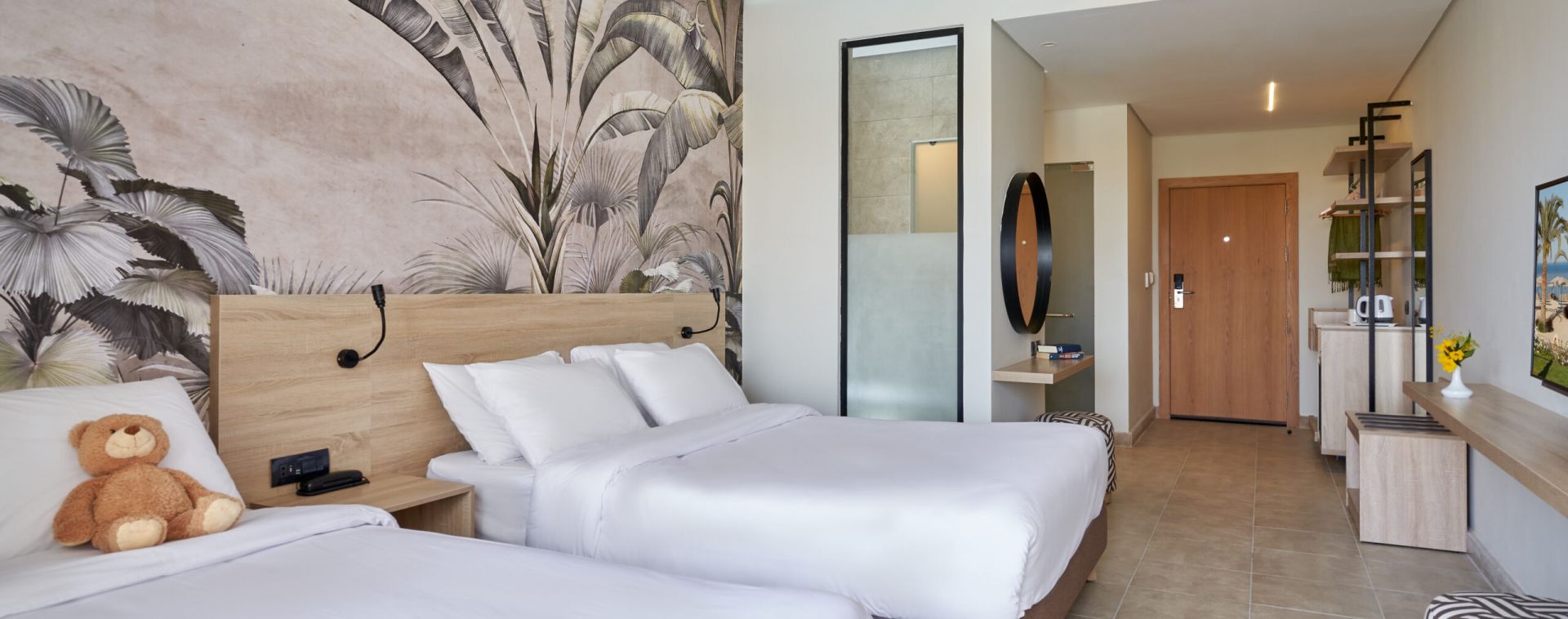 Хотелът разполага с общо 522 стаи, разположени в девет 3-етажни сгради, от които Comfort Room (27 м2), Premium Room (33 м2) и Family Room.