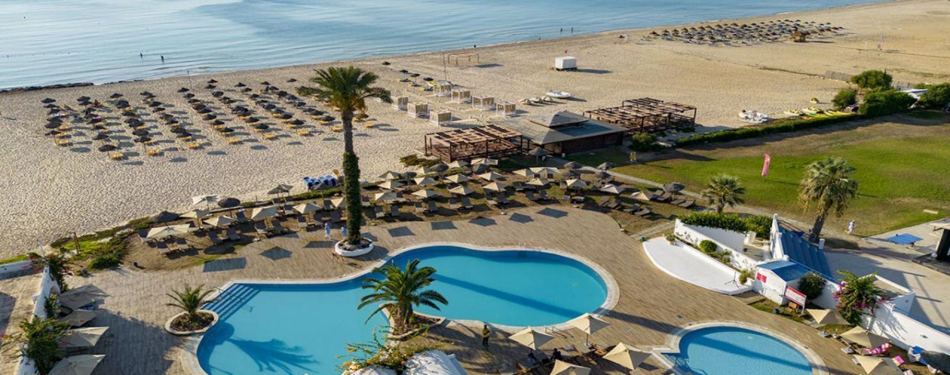 Собствен, широк и пясъчен плаж пред хотела. Чадъри и шезлонги на плажа и басейна - безплатно, плажни кърпи - безплатно, срещу депозит.