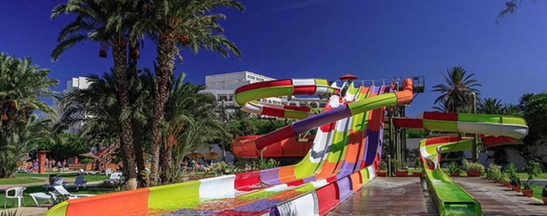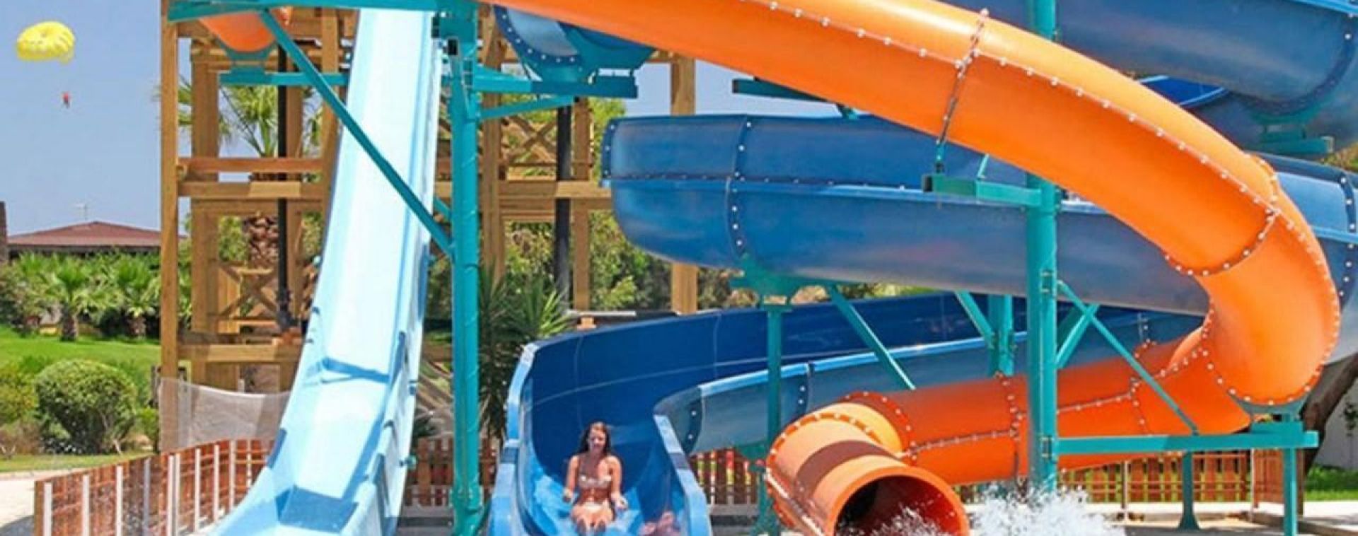 All Inclusive, няколко басейна, собствен аквапарк с водни пързалки, богата анимация, спортни терени и директен достъп до плажа. Хотелът е подходящ за семейства, особено с деца.