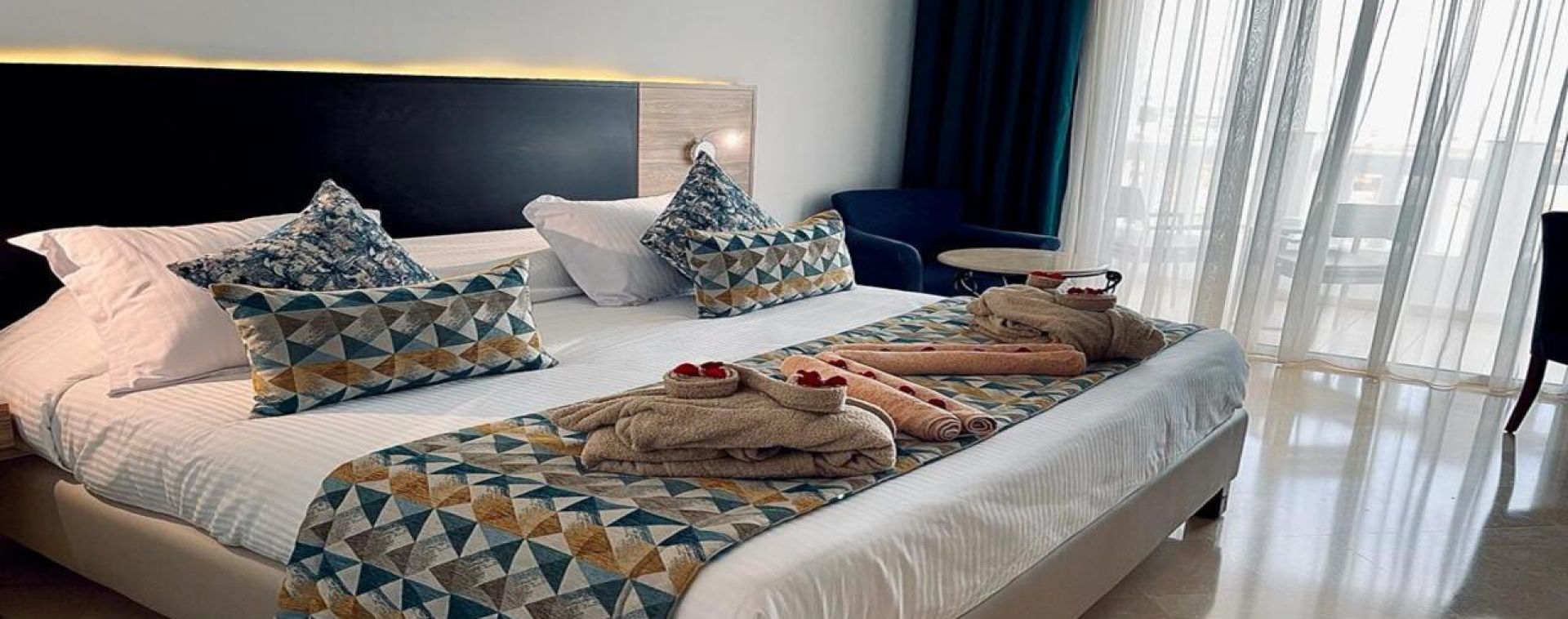 Всички стаи са оборудвани с климатик, сейф, телевизор, мини бар, сешоар, тоалетни принадлежности, балкон или тераса. Баня с душ / вана, Wi-Fi.