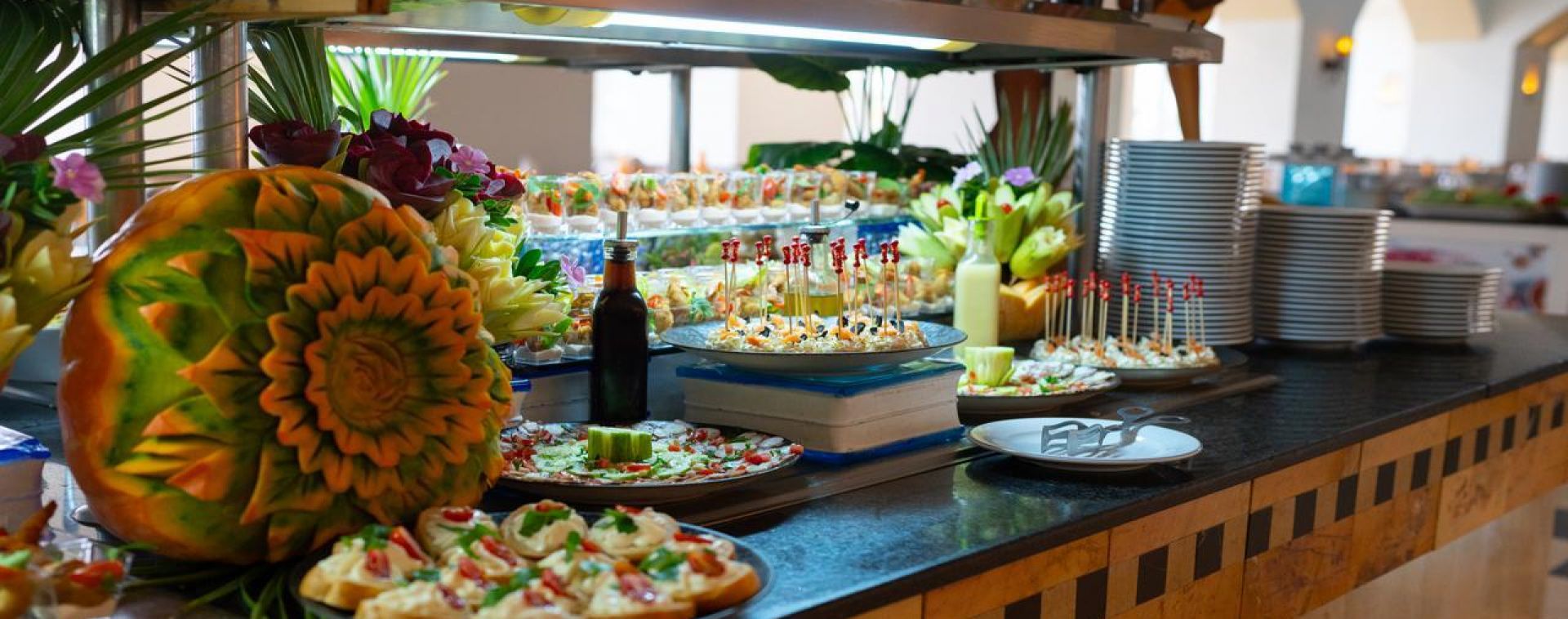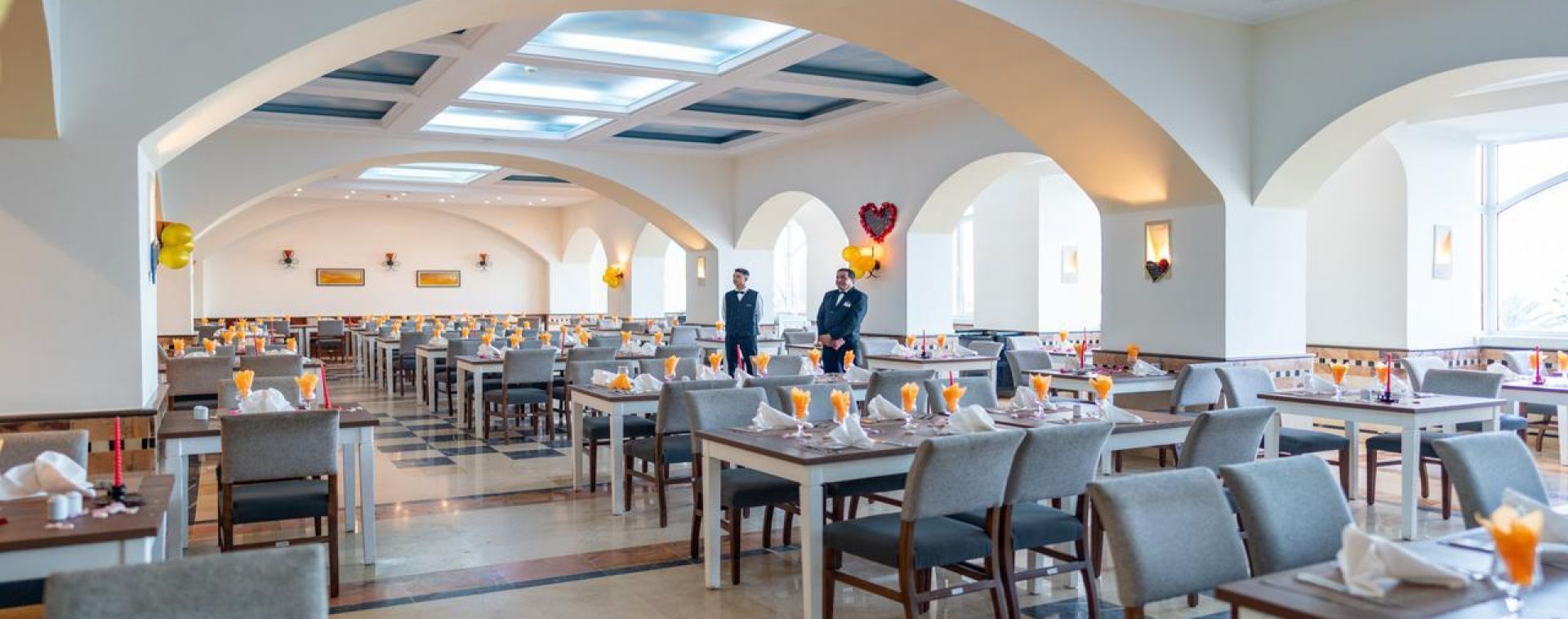 Основен ресторант – Основният ресторант предлага луксозно съчетание от източна и средиземноморска кухня. Сервира ястия за закуска, обяд и вечеря.