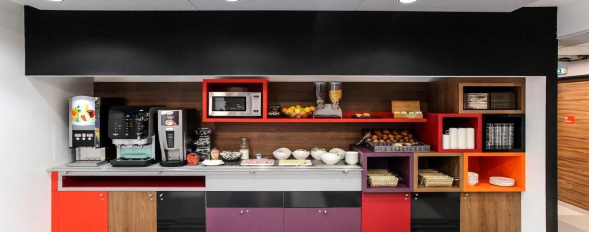Хотелът не разполага с основен ресторант, но предлага закуска и лоби зона със закуски и напитки