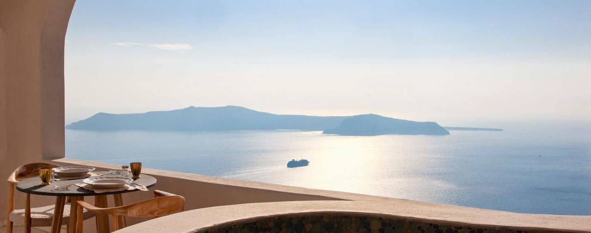 Хотел Gold Suites се издига сред зашеметяващата вулканична природа на Санторини в края на Имеровигли. Чудодейно кацнал на най-високата точка на калдерата, приблизително 300 метра над морското равнище, Имеровигли е тихо зашеметяващо село, погълнато от вулканичното величие на Санторини.