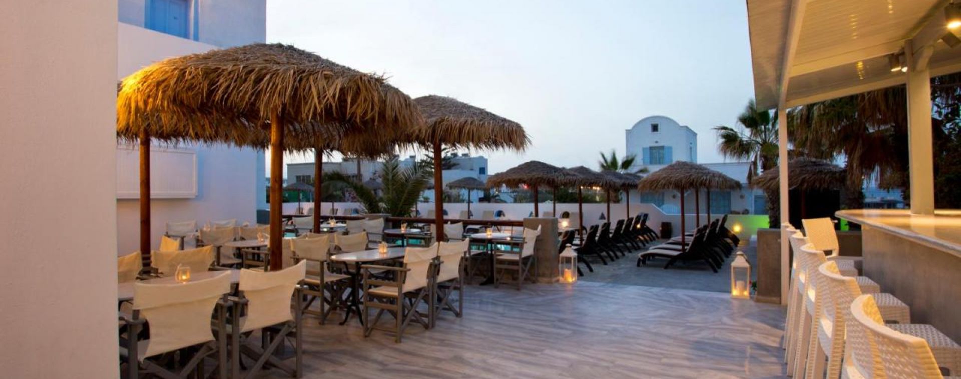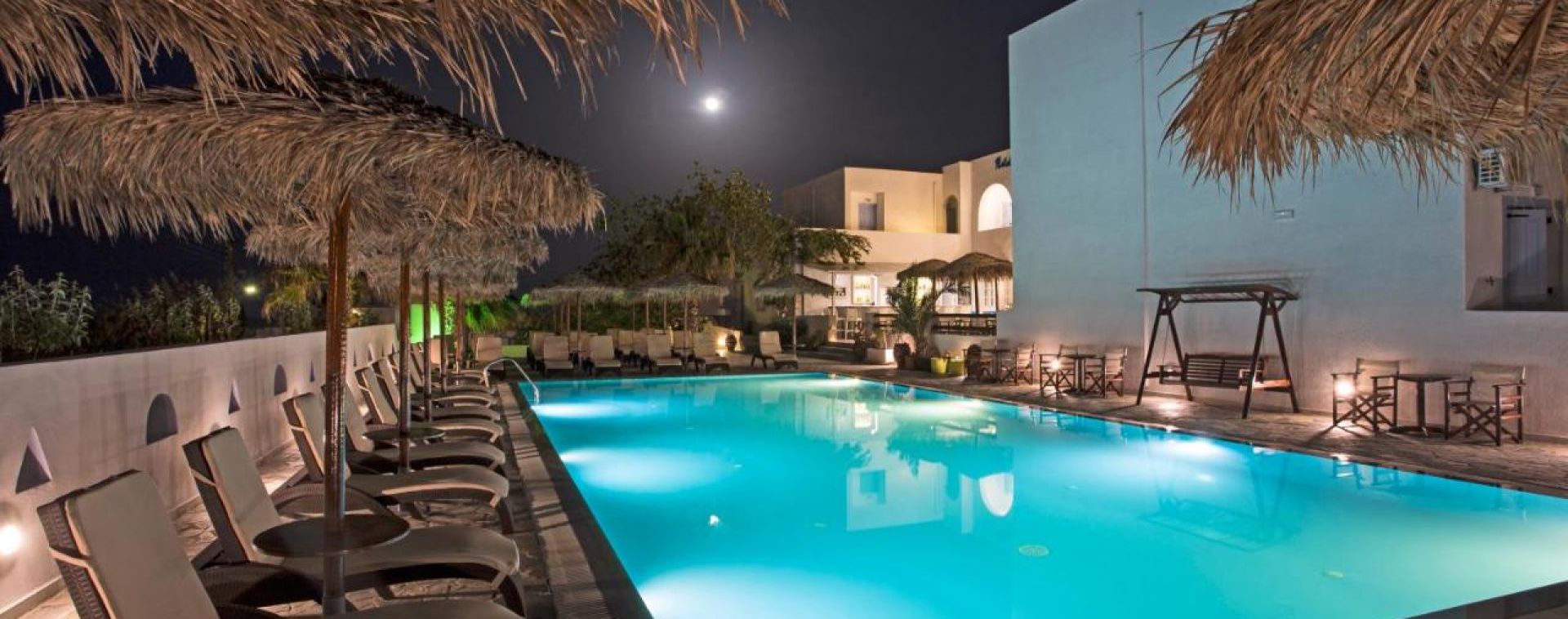 Хотелът се намира на о-в Санторини на 50 м. от плажа на Камари, на 10 км. от Фира и на 4 км. от международното летище в Санторини.
