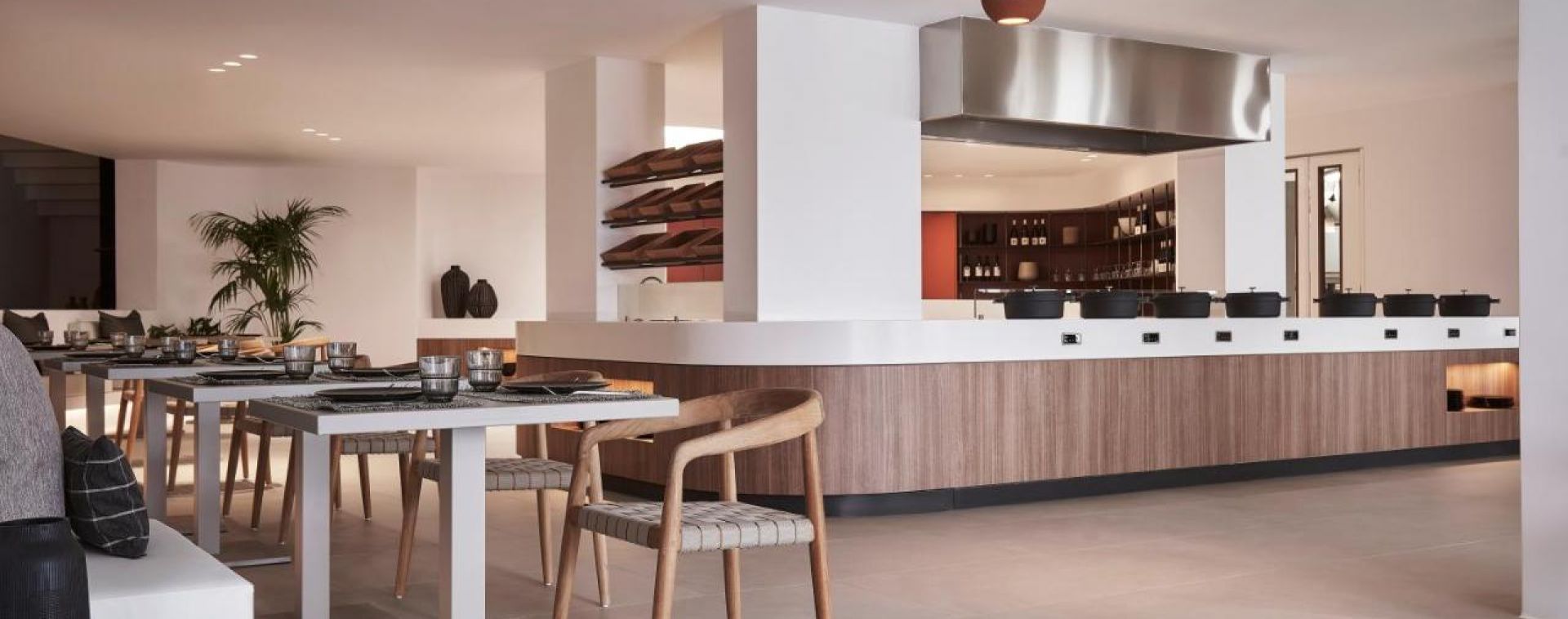 Хотелът разполага с ресторант до басейна с уникални гледки, предлага гръцка и средиземноморска кухня, бар до басейна, фитнес център и СПА.