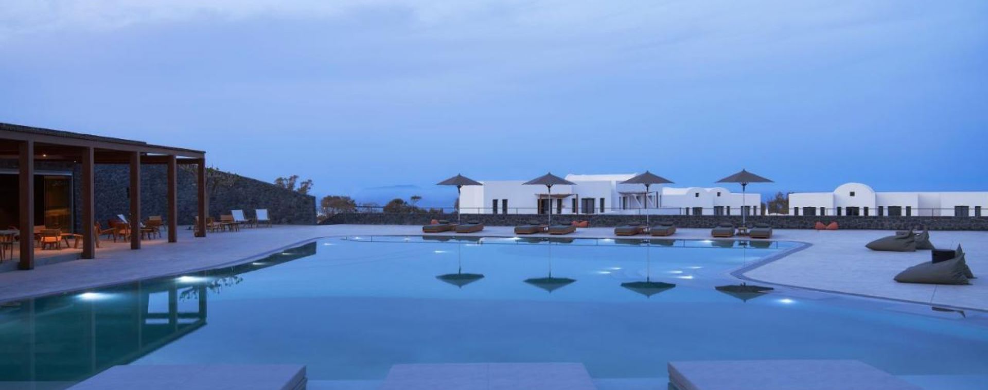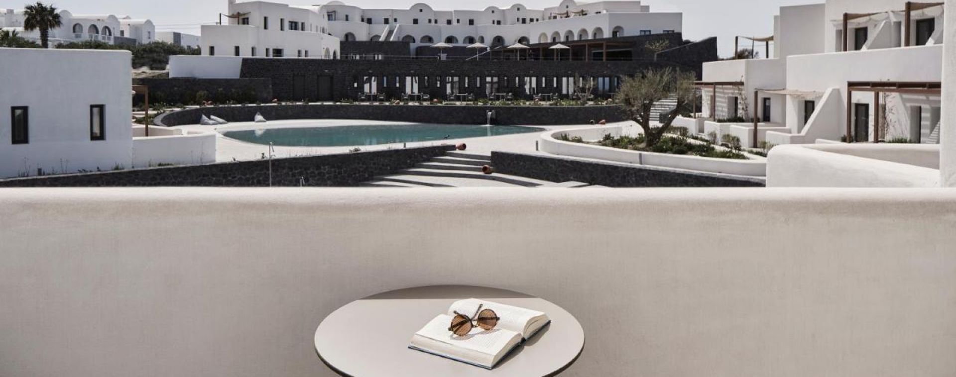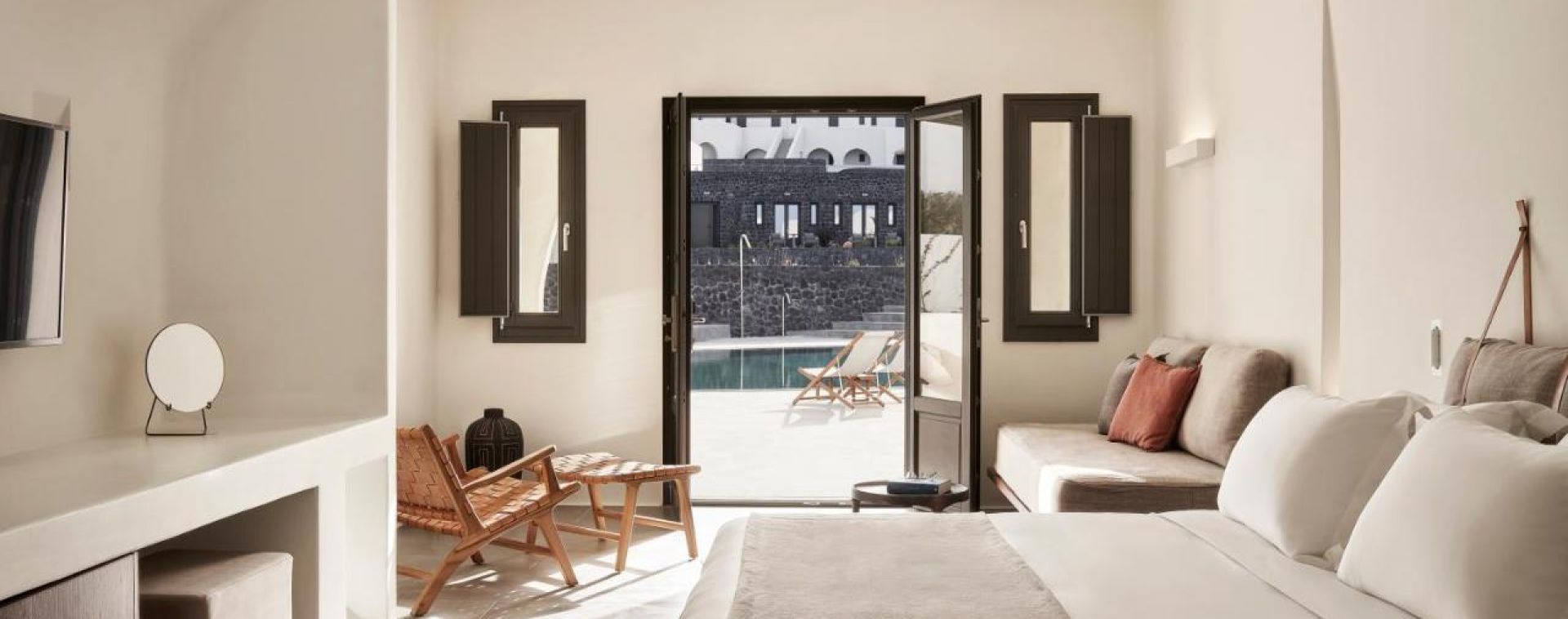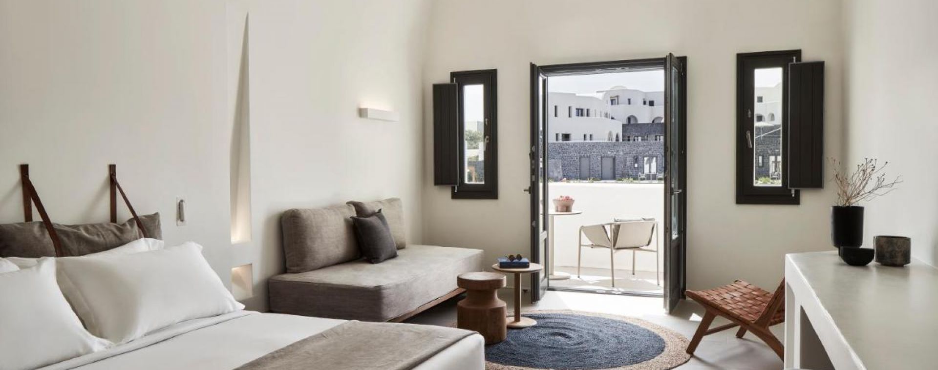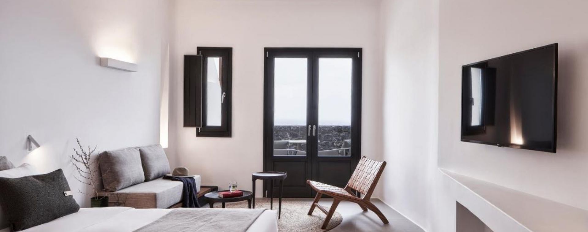 Orama Hotel & Spa предлага 100 супериорни стаи и апартаменти със стил на декорация, който съчетава линиите на санторинската архитектура с минималистични детайли. Всички сгради са на 2 етажа.