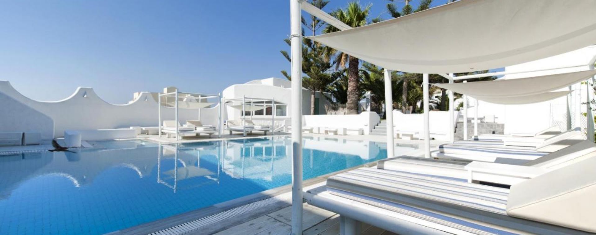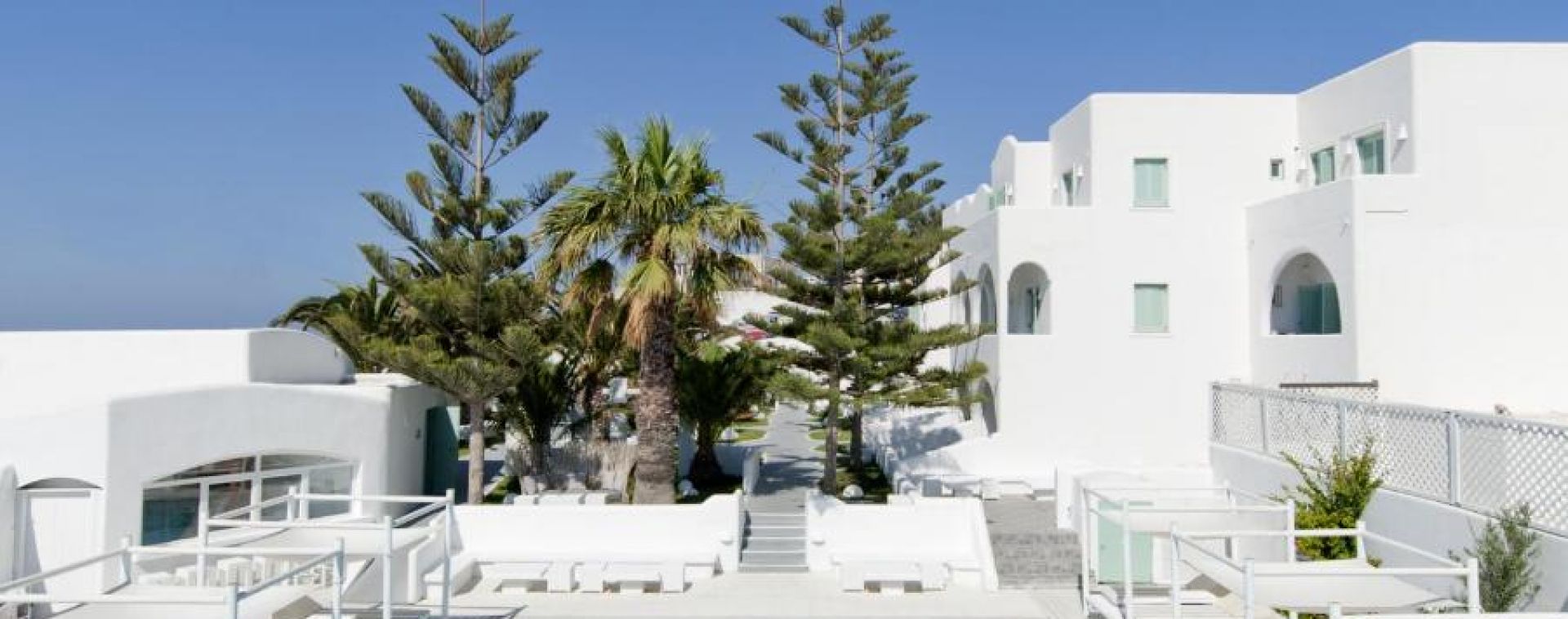 Хотелът се намира на 9 километра от летището, на 12 км от пристанище Athinios, на 15 км от живописното селище Oia, на 9 км от най-известният и добре организиран черен бряг на Камарата, в центъра на туристическото селище Фира. Местоположението на хотела е идеално за опознаването на Санторини и неговата уникална красота. Голяма част от бляскавите ресторанти, барове, магазини на централния площад в Фира се намират в непосредствена близост до хотела.