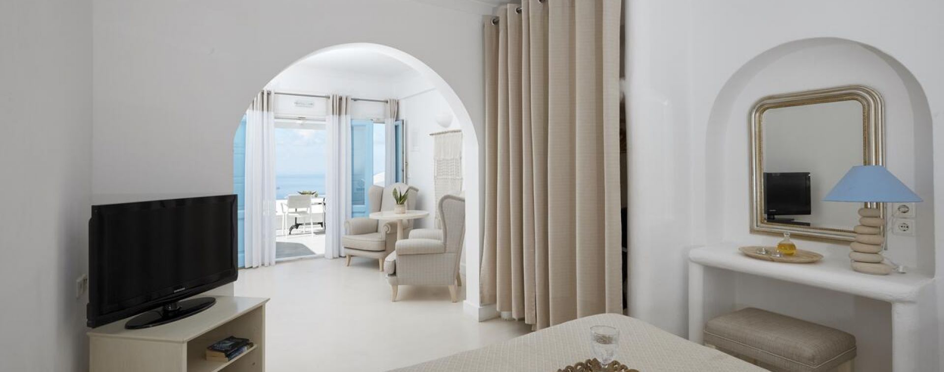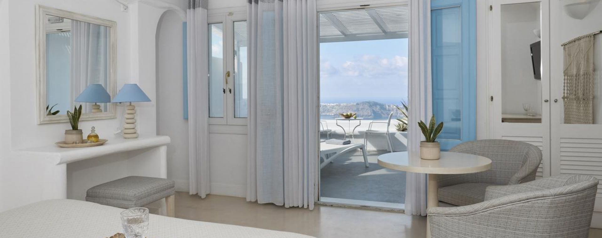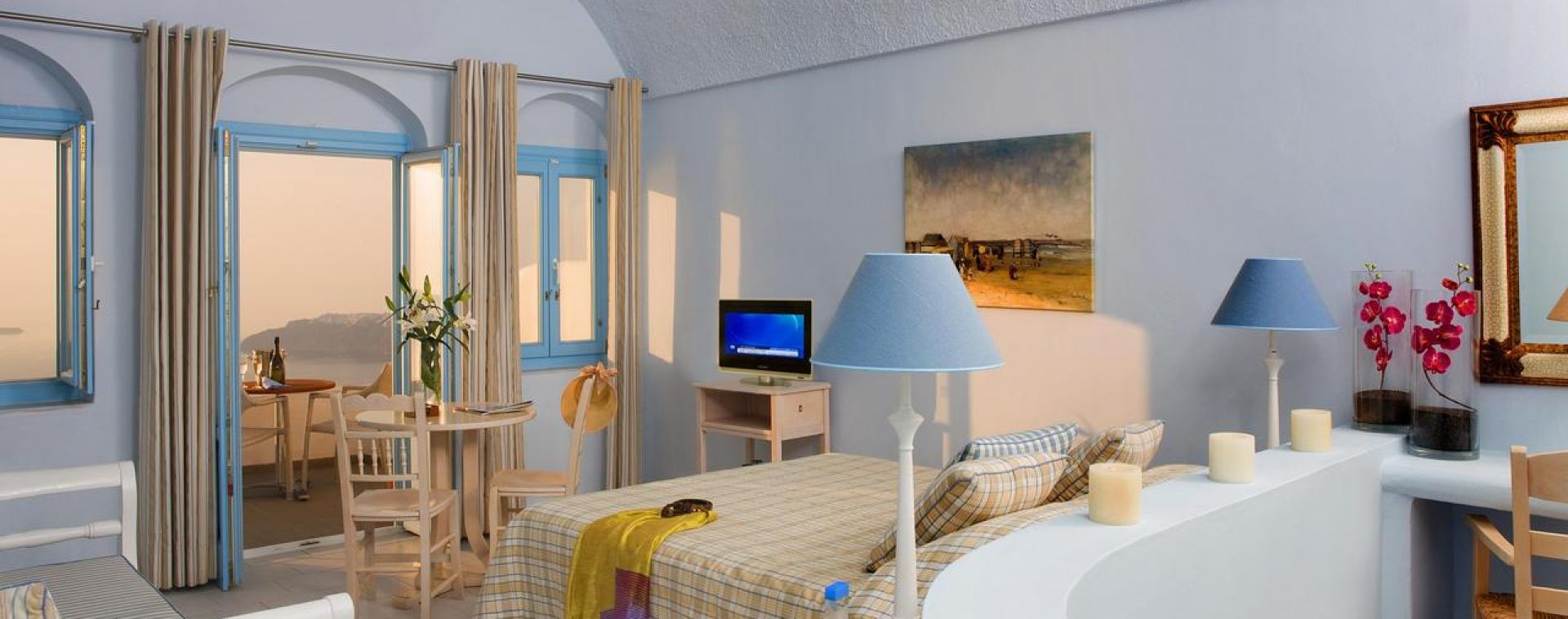 Хотелът се намира в Имеровигли и предоставя уникална гледка към калдерата на Санторини. Столицата на острова Фира е само на 4 км, летището на Санторини - на 8 км, a централното пристанище Атиниос - на 12 км.