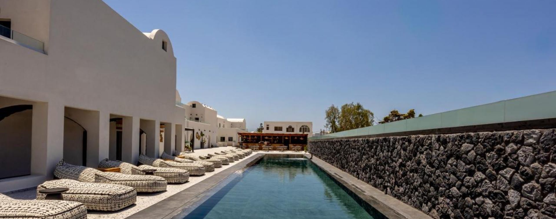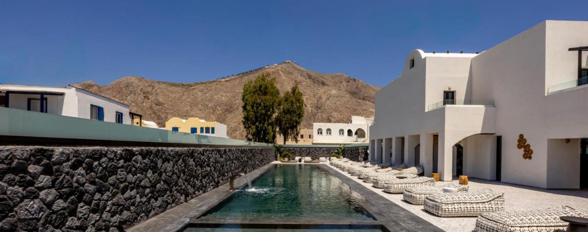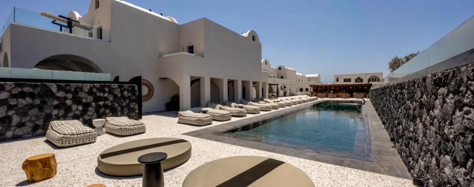 Хотелът се намира на 300 метра от плажа, в известния курорт Периса, на 12 километра от столицата на острова Фира. Летището на Санторини се намира на 10 км. Хотелът отваря врати през 2023 след пълна реконструкция.