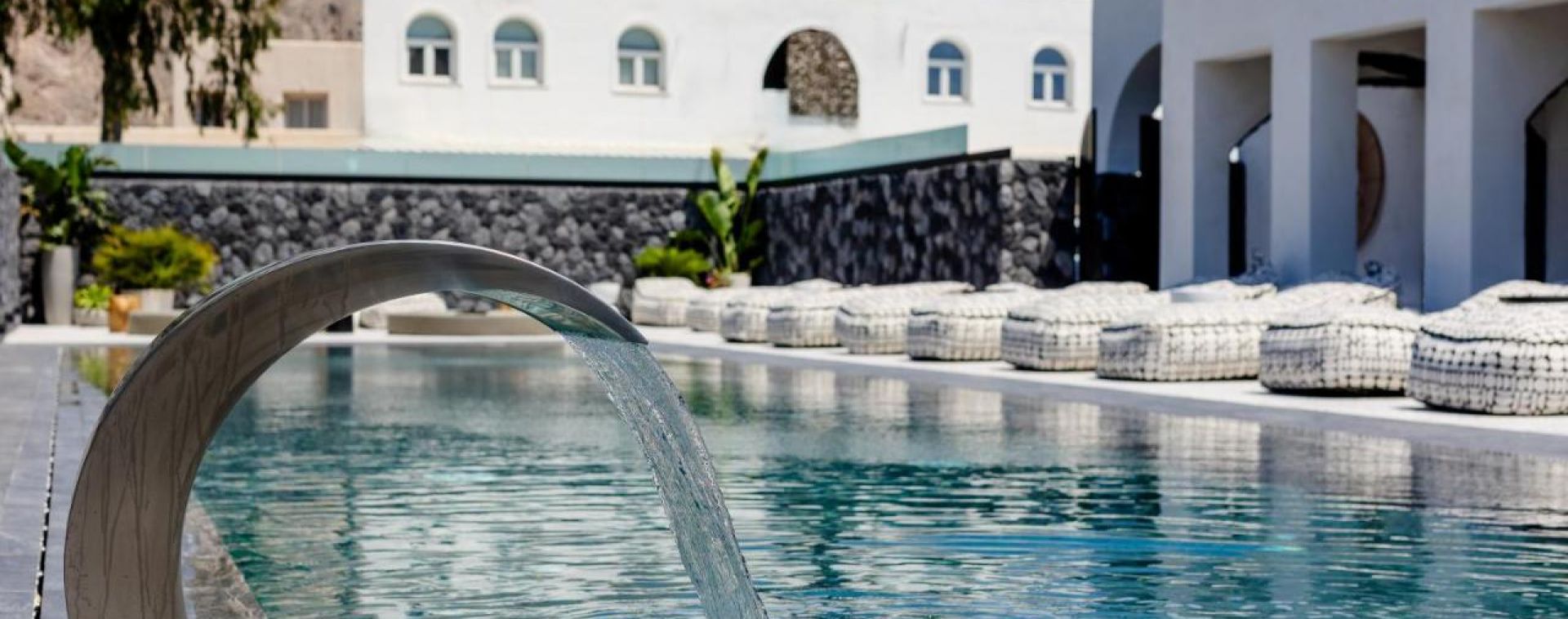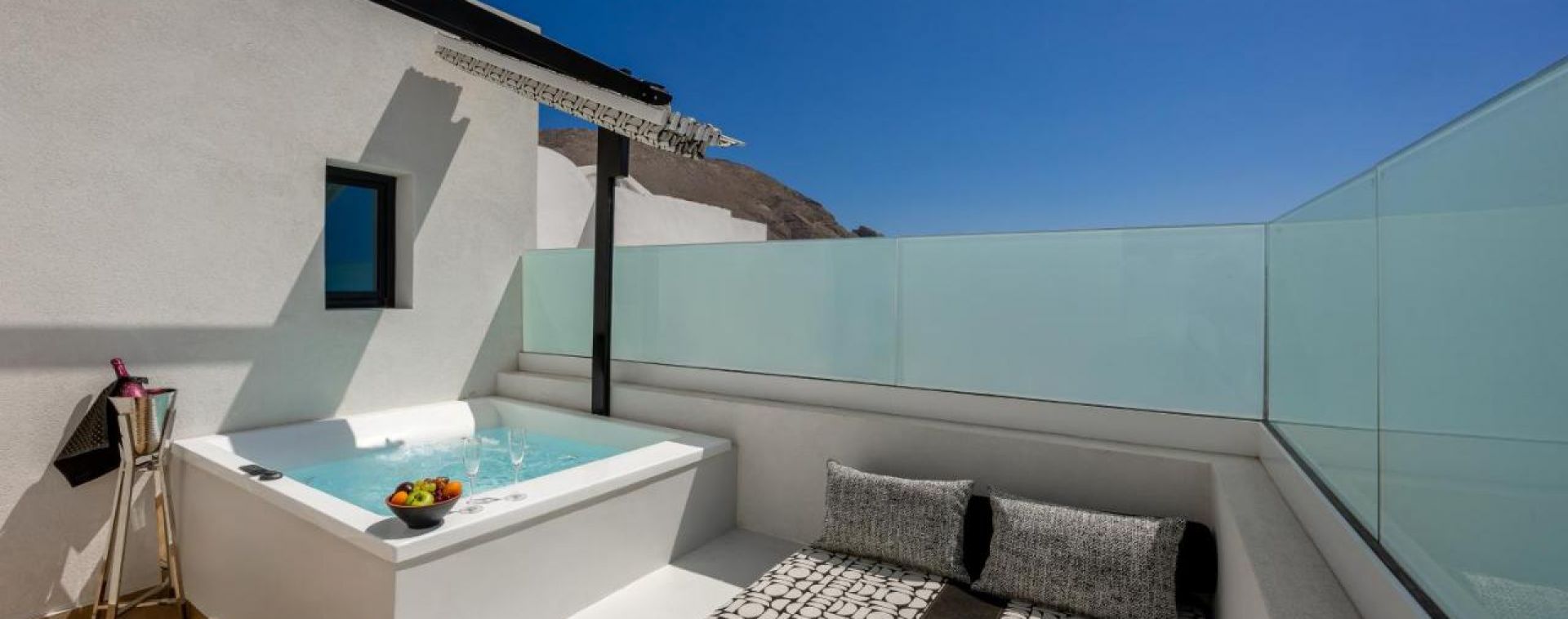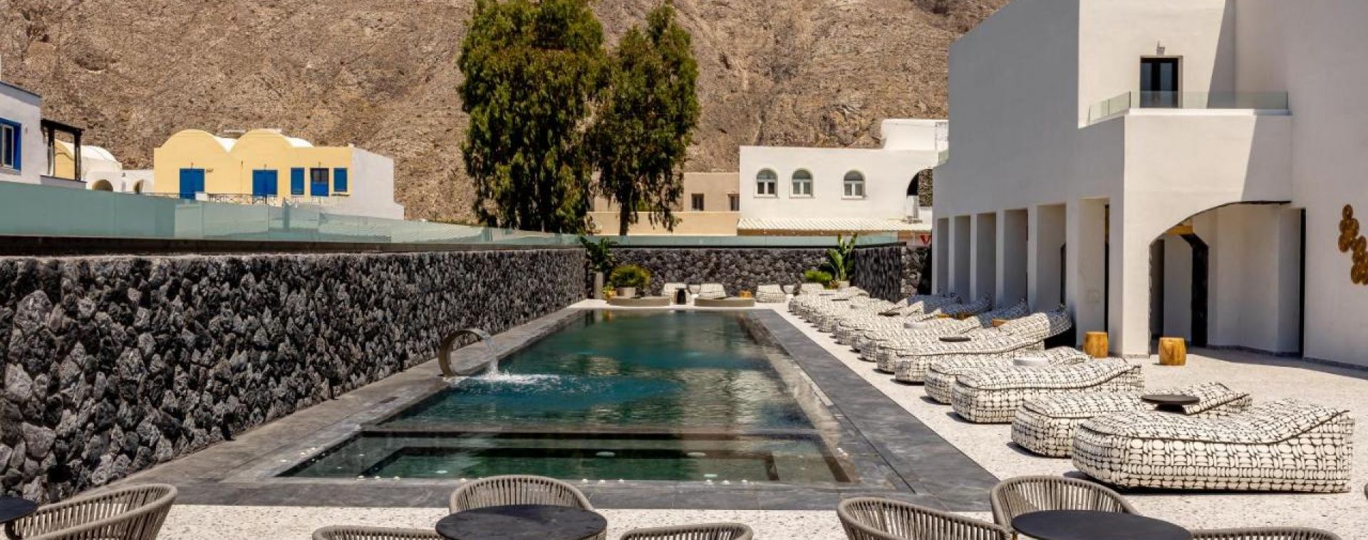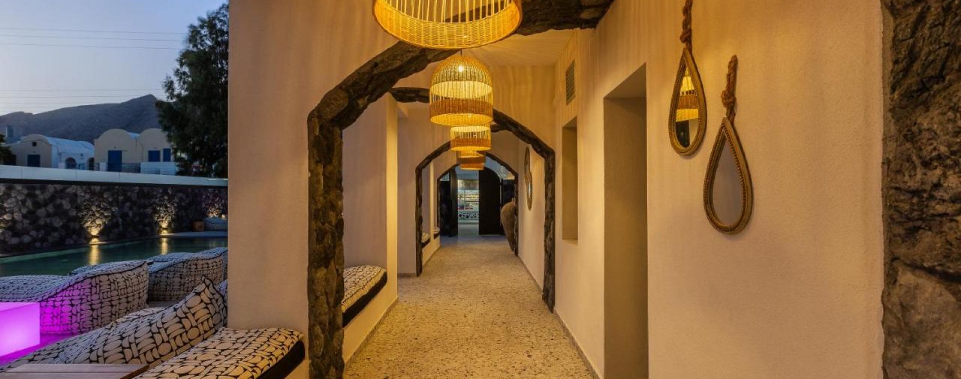 Хотелът се намира на 300 метра от плажа, в известния курорт Периса, на 12 километра от столицата на острова Фира. Летището на Санторини се намира на 10 км. Хотелът отваря врати през 2023 след пълна реконструкция.