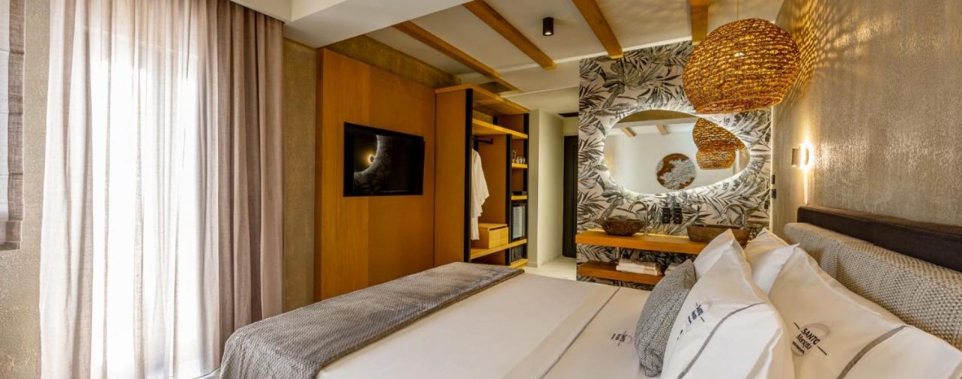 Хотелът разполага с 24 бутикови стаи и сюити, с модерно обзавеждане и традиционни цикладски елементи. Всяка стая предлага климатик, телевизор, телефон, луксозно спално бельо от ''GUY LAROCHE, мини бар, сешоар, сейф, сет за чай и кафе, кафемашина Nesspresso, безплатен Wi-fi, халати.
