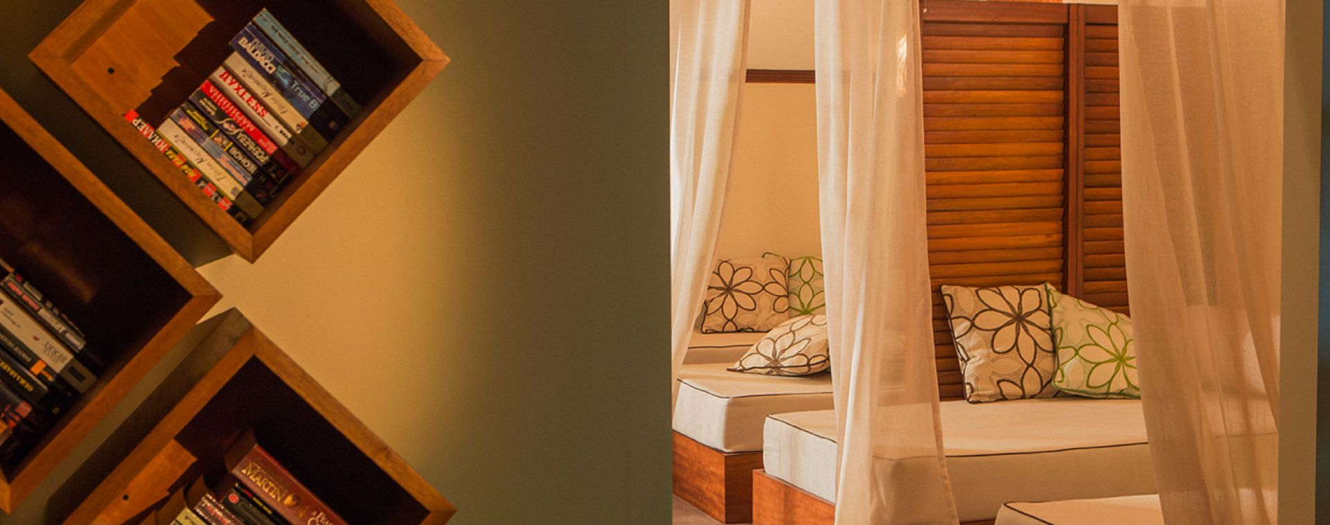 Луксозните стаи и вили разполагат с тераси с гледка към плажа. Всяка от тях е оборудвана с кабелна / сателитна телевизия с китайски кабелни канали, сейф и работно бюро. Удобствата включват също хладилник, условия за приготвяне на чай/кафе. Самостоятелните бани разполагат с вана и душ. За гостите са осигурени плажна чанта, чехли и електрическа кана.