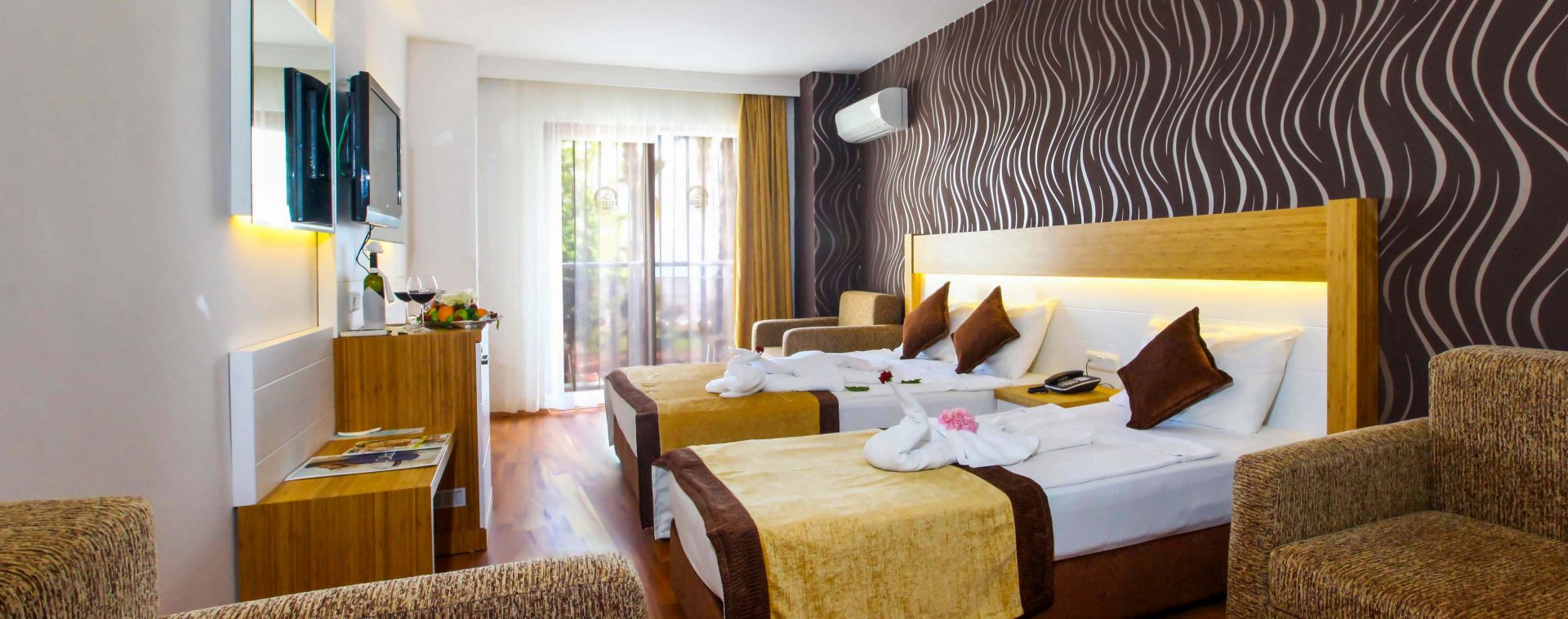 STANDARD ROOM LARGE- Разполагат с 1 спалня или с 1 голямо единично легло + 1 стандартно единично, всички стаи имат баня с тоалетна. Обща площ на стаята 20 м2. Максимум капацитет за настаняване: двама възратни + две деца или 3 възрастни + 1 дете.