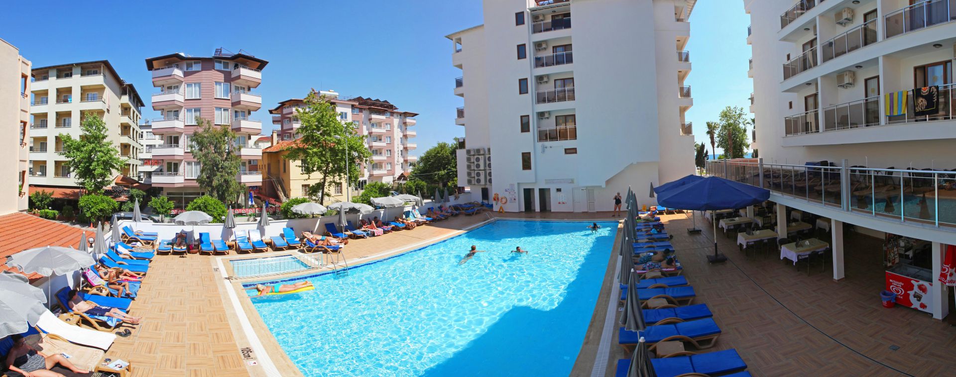 Хотелът се намира на 800м. от центъра на гр.Алания на 125км. от летище Анталия. Построен е през 1986г., с обща площ от 5400 м2., реновиран през 2012г. 3 звезден хотел, само на 1 км от търговските и развлекателни места в центъра на Алания. Можете да се стигнете лесно с автобус и такси до центъра на града.