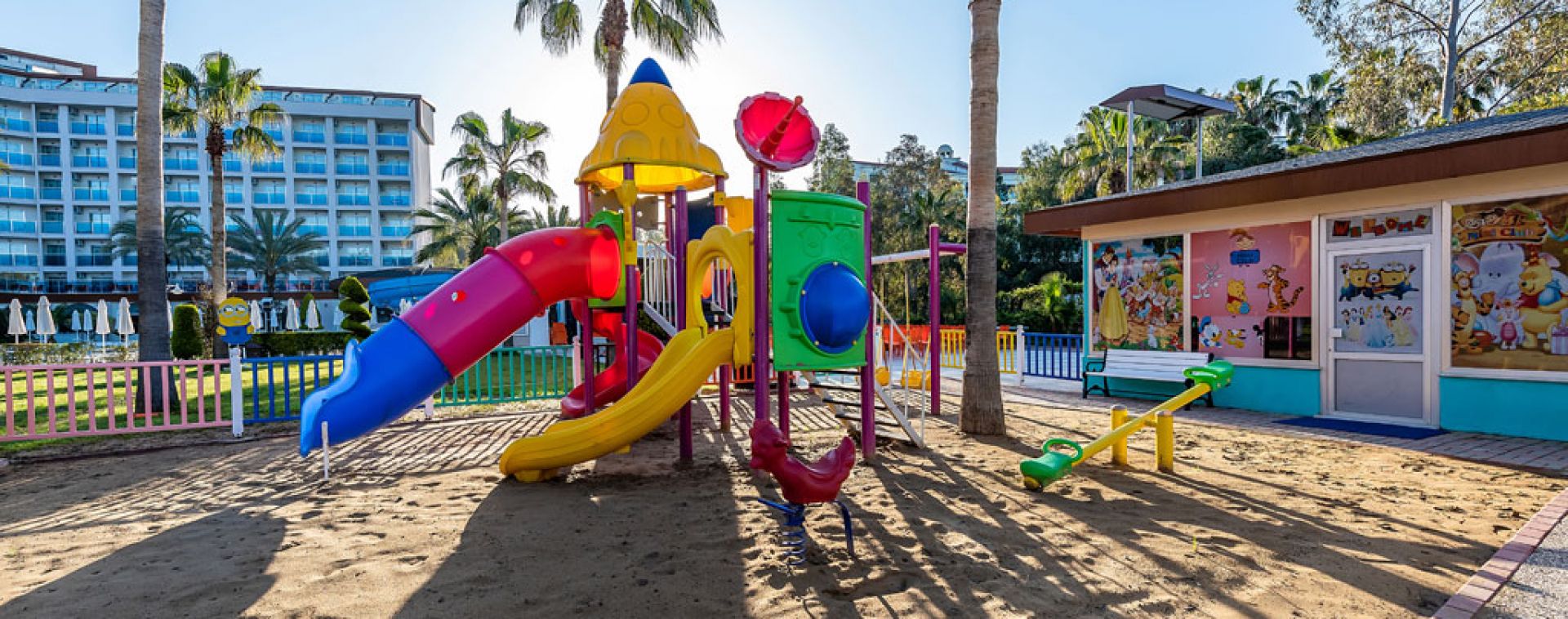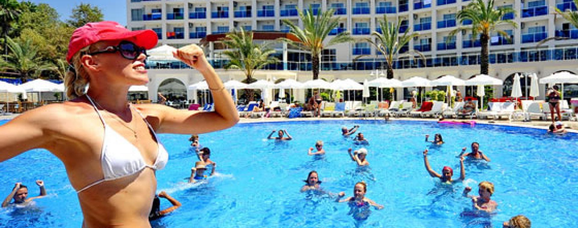 Ресторант (бюфет), бар, диско бар, фитнес зала, аеробика, турска баня, сауна, масаж, фризьорски салон, козметичен салон, пералня, открит басейн, плажен волейбол, тенис на маса, билярд/снукър, водни спортове, паркинг, плаж - собствен, пясък. За децата: детски басейн, 3 водни пързалки ,детска площадка, мини клуб,Бар на плажа - безплатно.