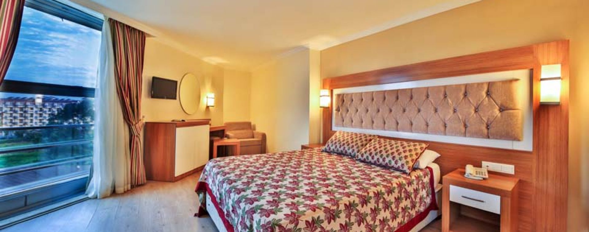 Основен ресторант, 3 Ала Карт ресторанта (турски, рибен, барбекю - с предварителбно записване, за 1 седмичен престой се полага 1 посещение - безплатно), 6 бара, 2 открити и 2 закрити басейна, 1 конферентна зала, SPA център, магазини, фризьорски салон. За децата: детски басейн, мини клуб, анимация, детска площадка. Безплатни услуги: сауна, турска баня, плажен волейбол, тенис на корт, тенис на маса, баскетбол, боулинг, безжичен интернет (на lobby). Платени услуги: масаж, игрални автомати, лекар, водни спортове. Плаж: Собствен - пясъчен. Чадъри, шезлонги и матраци на плажа и басейна - безплатно.