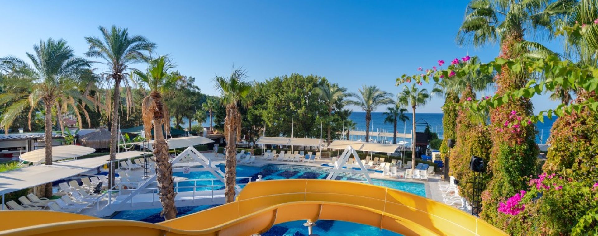 Намира се на 95 км от летище Анталия, на 100 км от центъра на Анталия, на 30 км от центъра на Алания, на брега на морето. Построен 1994 г. на обща площ от 14 500 м2. Последно реновиран 2023 г.