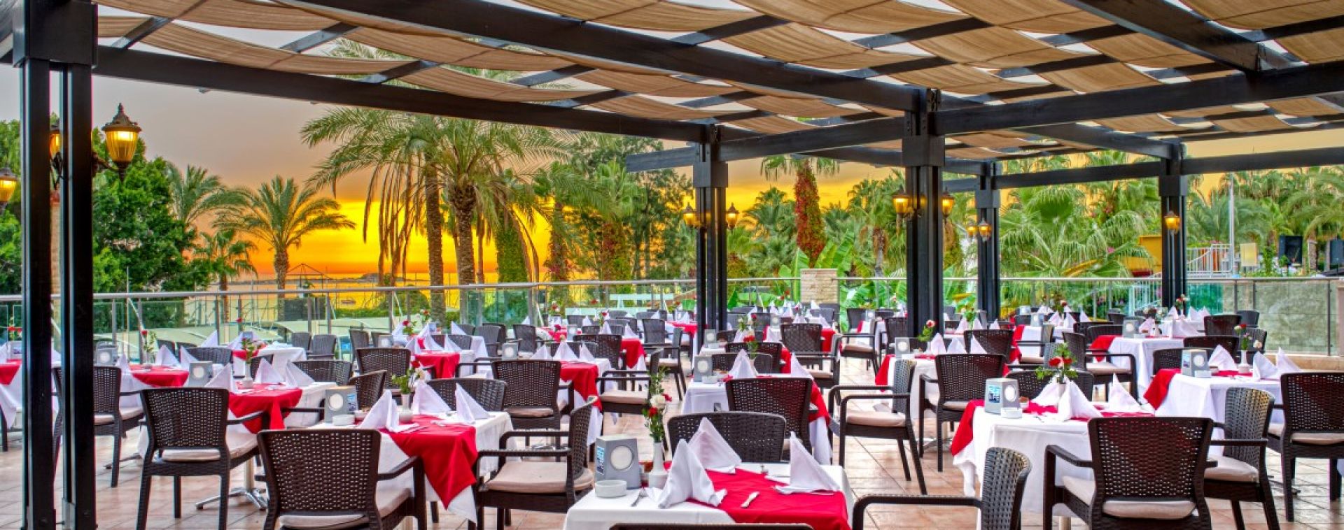 Основен ресторант, 2 а-ла-карт ресторанта (турски и италиански - 1 безплатно посещение на 1 от ресторантите при минимум 7 нощувки), снек бар, гьозлеме, сладкарница, 4 бара, диско бар, 3 открити басейна, водни пързалки, конферентна зала, СПА център, магазини.