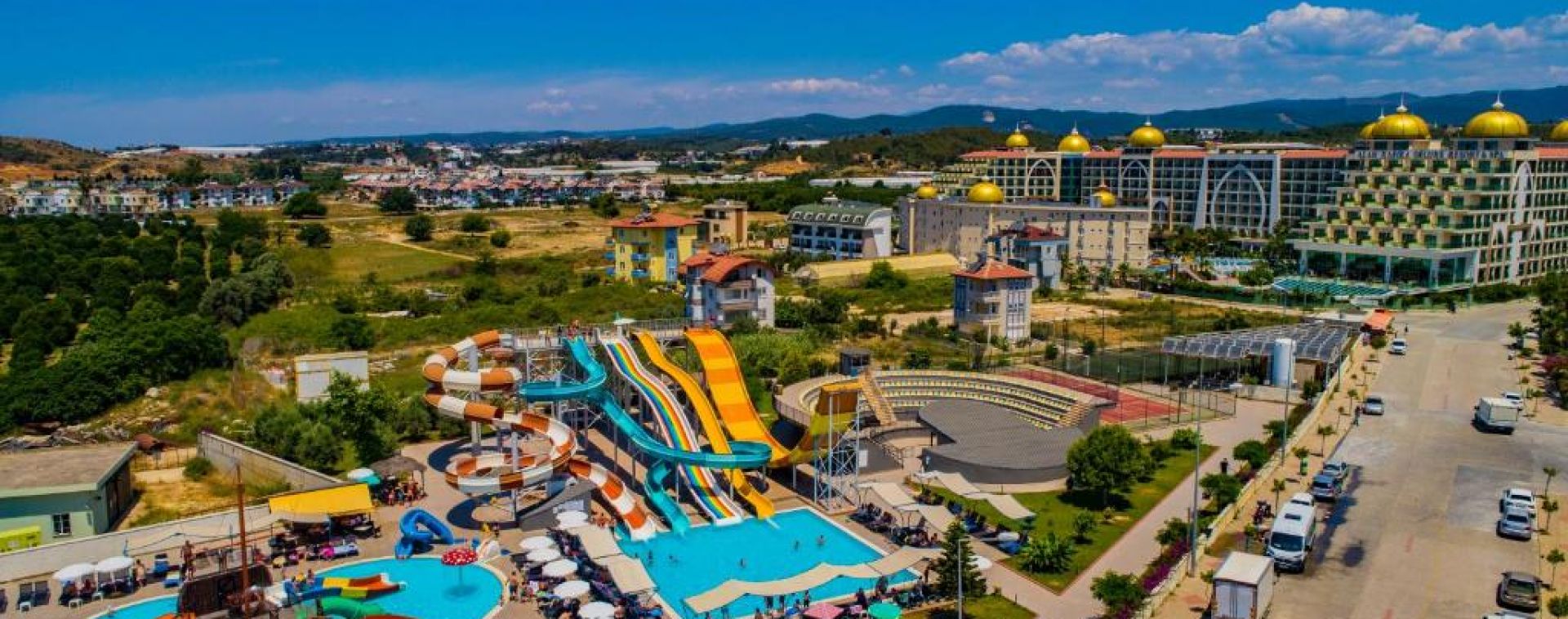 Основен ресторант, 2 а-ла-карт ресторанта (рибен, турски - 1 безплатно посещение на 1 от ресторантите при минимум 7 нощувки), гьозлеме, сладкарница, бистро ресторант, 6 бара, 2 открити и 1 закрит басейн, водни пързалки, приключенски парк, кино, амфитеатър, СПА център, дискотека, магазини, 2 конферентни зали, паркинг.