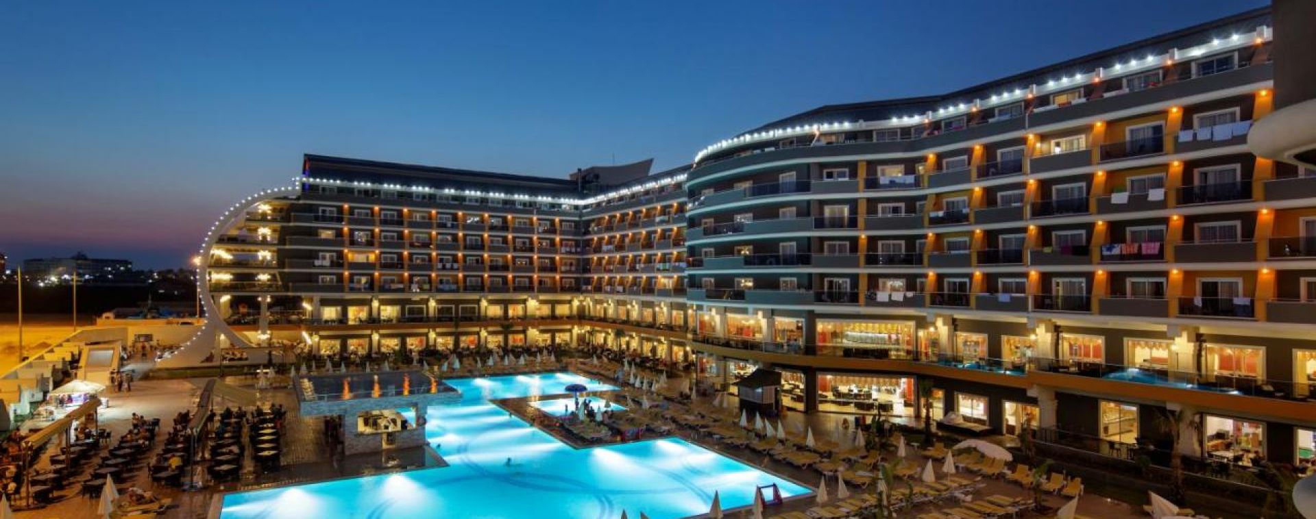 Намира се на 100 км от летище Анталия, на 110 км от центъра на Анталия, на 15 км от центъра на Алания, на 400 м от брега на морето. Построен 2013 г., на обща площ от 14 102 м2.