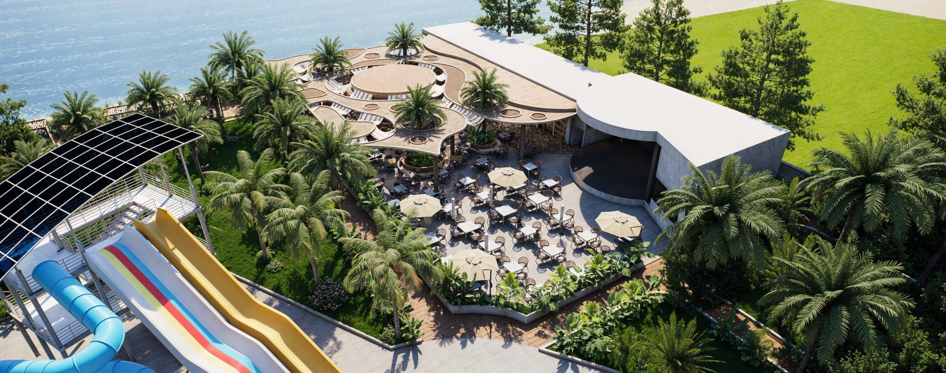 Основен ресторант, 2 а-ла-карт ресторанта (турски и италиански - 1 безплатно посещение на един от ресторантите - с предварителна резервация), 2 бара, открит и закрит басейн, 3 водни пързалки, магазини.