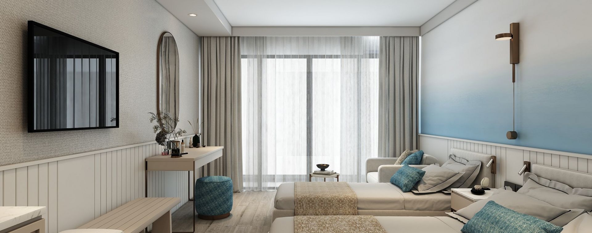 Хотелът разполага с общо 247 стаи, от които 177 стандартни, 60 фамилни и 10 апартамента. Всички стаи са оборудвани с климатик, телевизор, телефон, баня с душ, сешоар, минибар, сейф (безлатен), балкон.