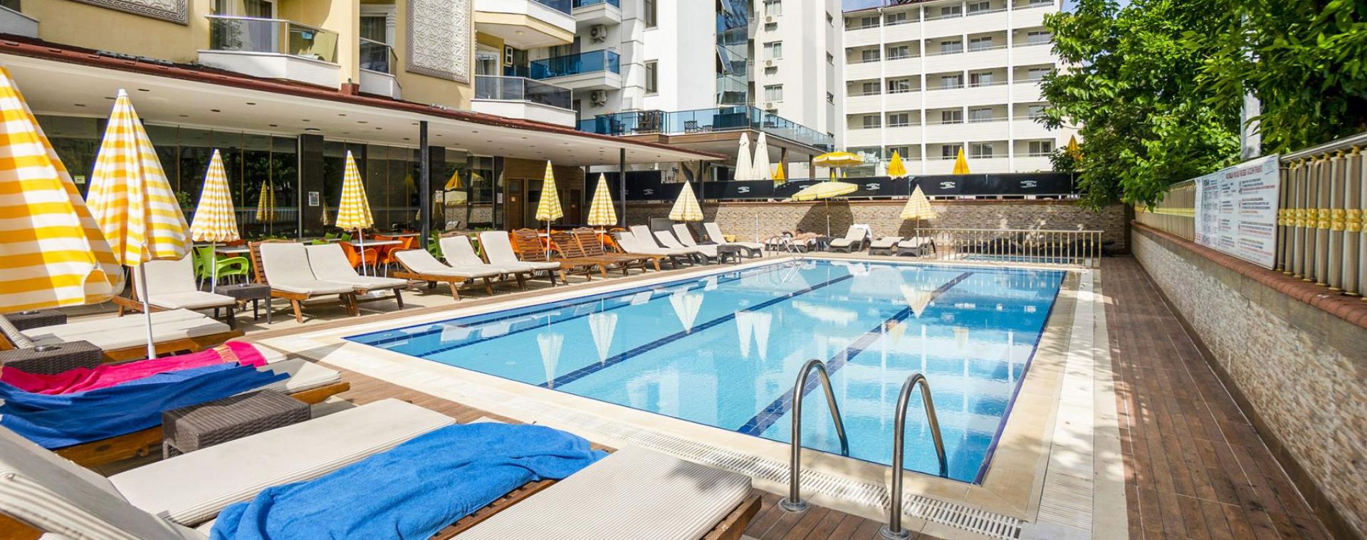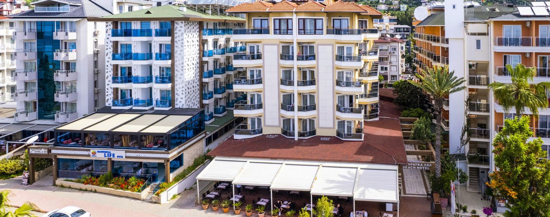 Намира се на 120 км от летище Анталия, на 130 км от центъра на Анталия, на 1 км от центъра на Алания, на 50 м от брега на морето. Построен 1993 г., на обща площ от 2 000 м2. Реновиран 2013 г. (стаи и общи площи).