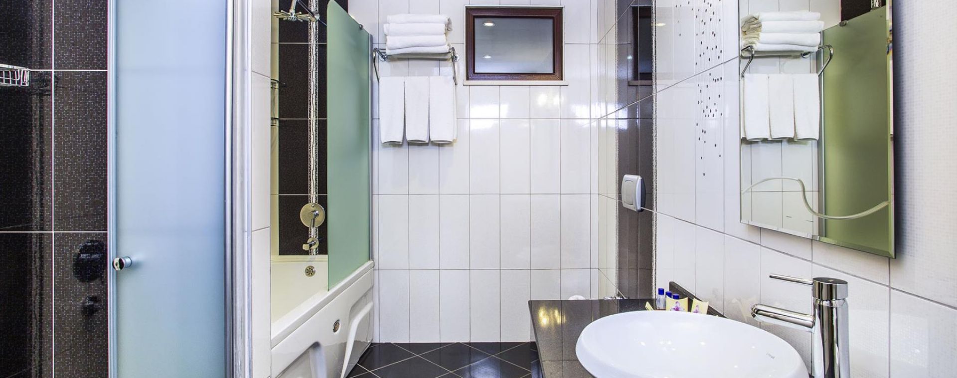 Всички стаи са оборудвани с климатик, телевизор, телефон, баня с душ, сешоар, минибар (платен), сейф (платен), балкон.