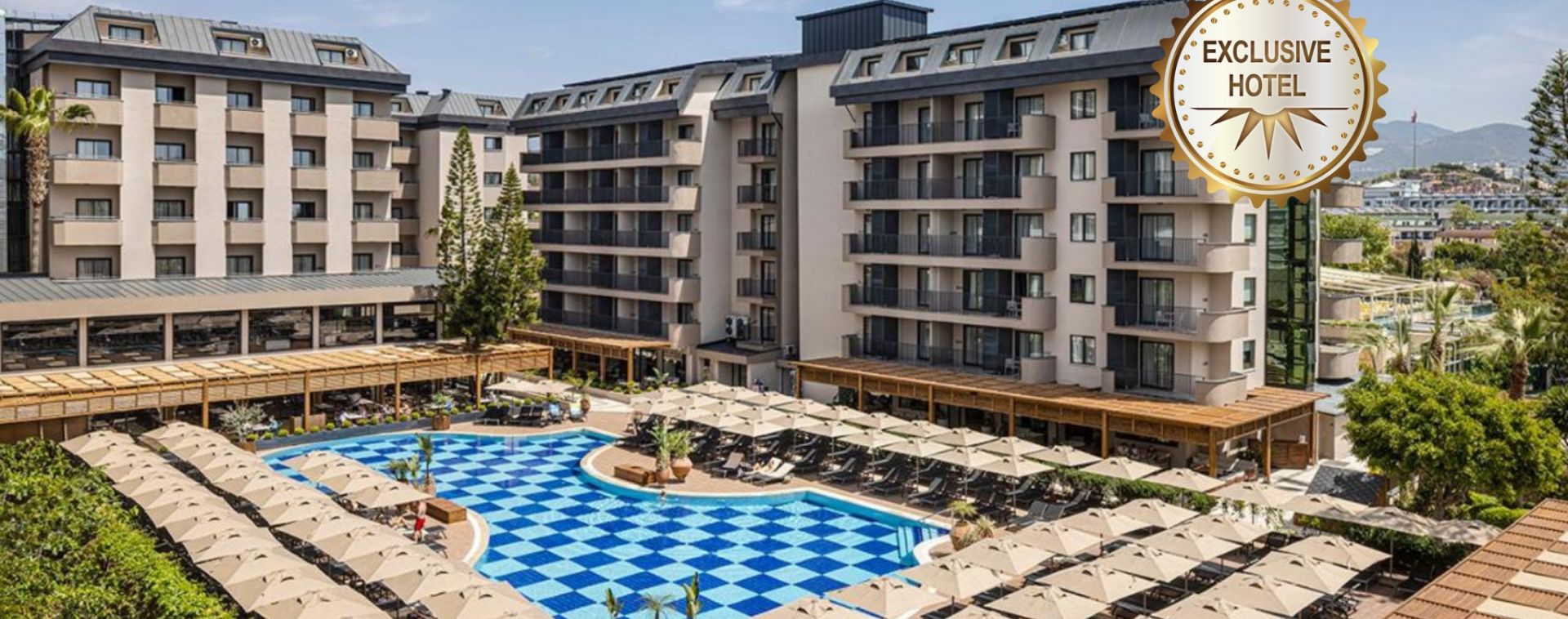 Разположен на 110 км от летище Анталия, на 12 км от центъра на Алания и на 800 м от Конаклъ, на 150 м от брега на морето. Реновиран през 2024 г.