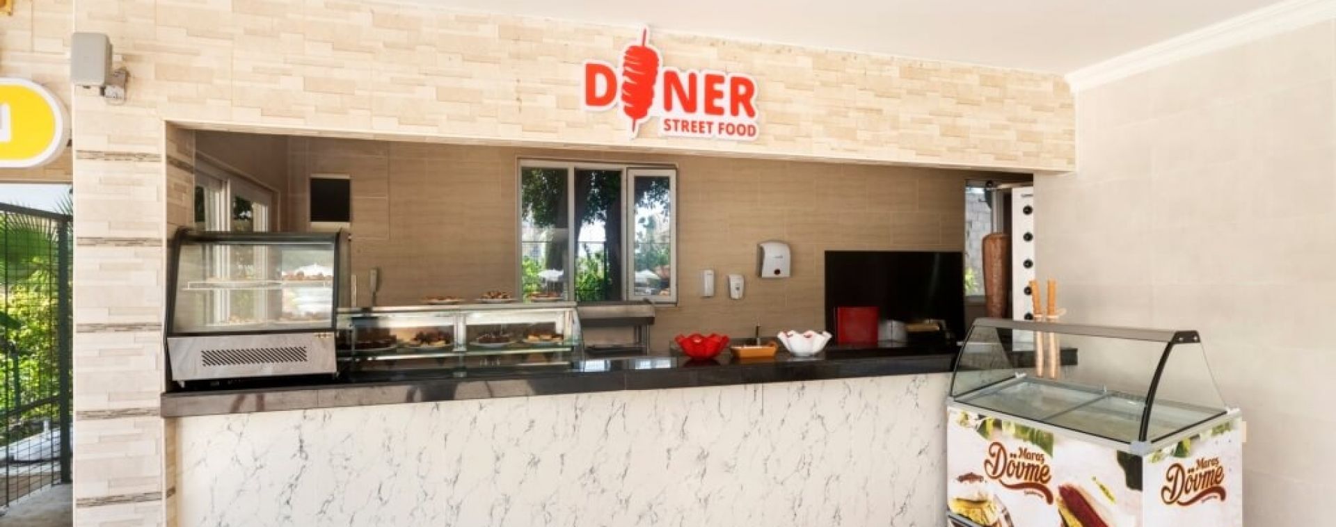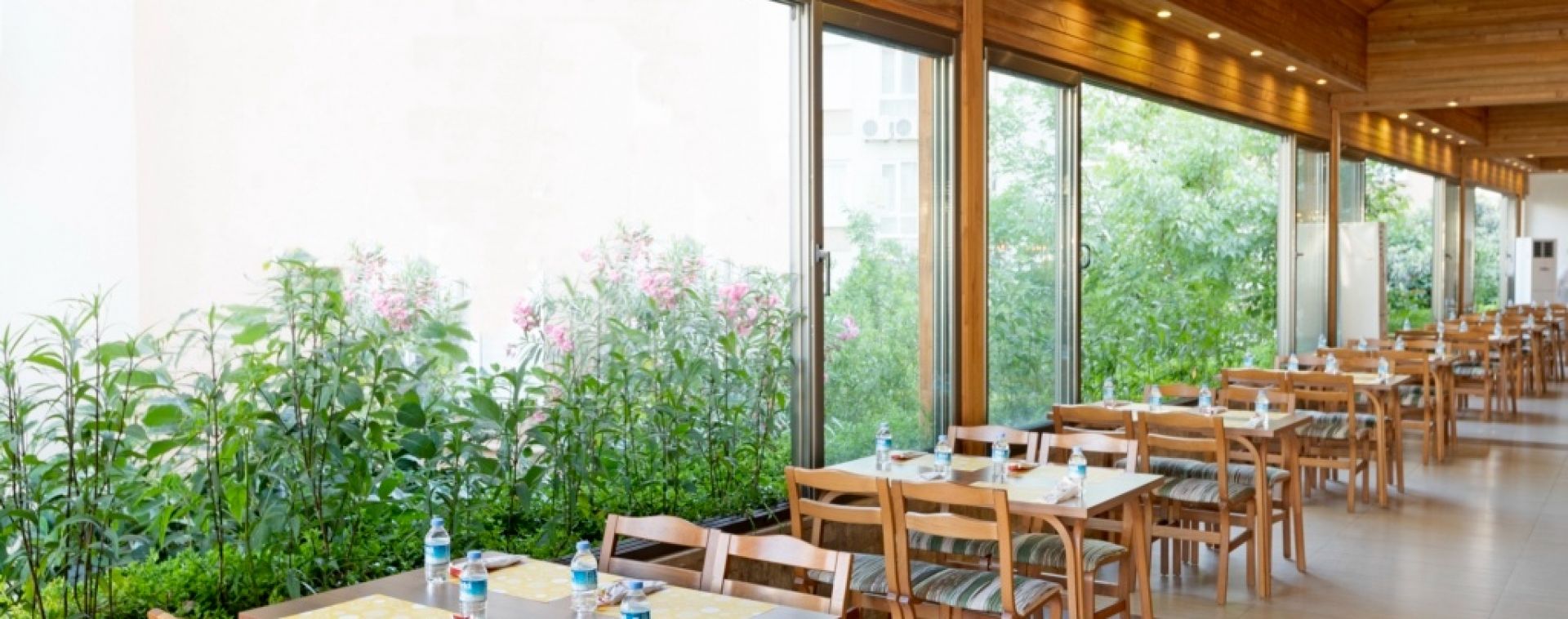 Основен ресторант, 3 бара, 1 открит басейн, 3 водни пързалки, СПА център, Wi–Fi.