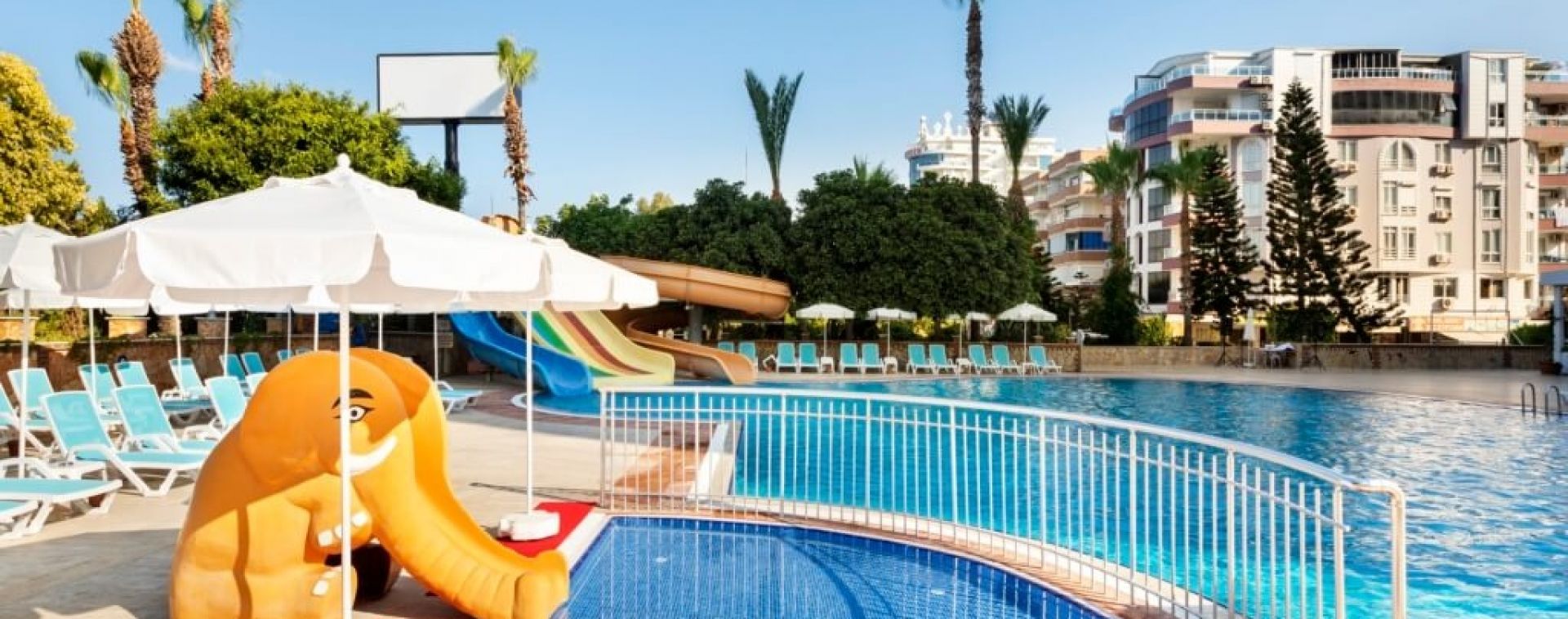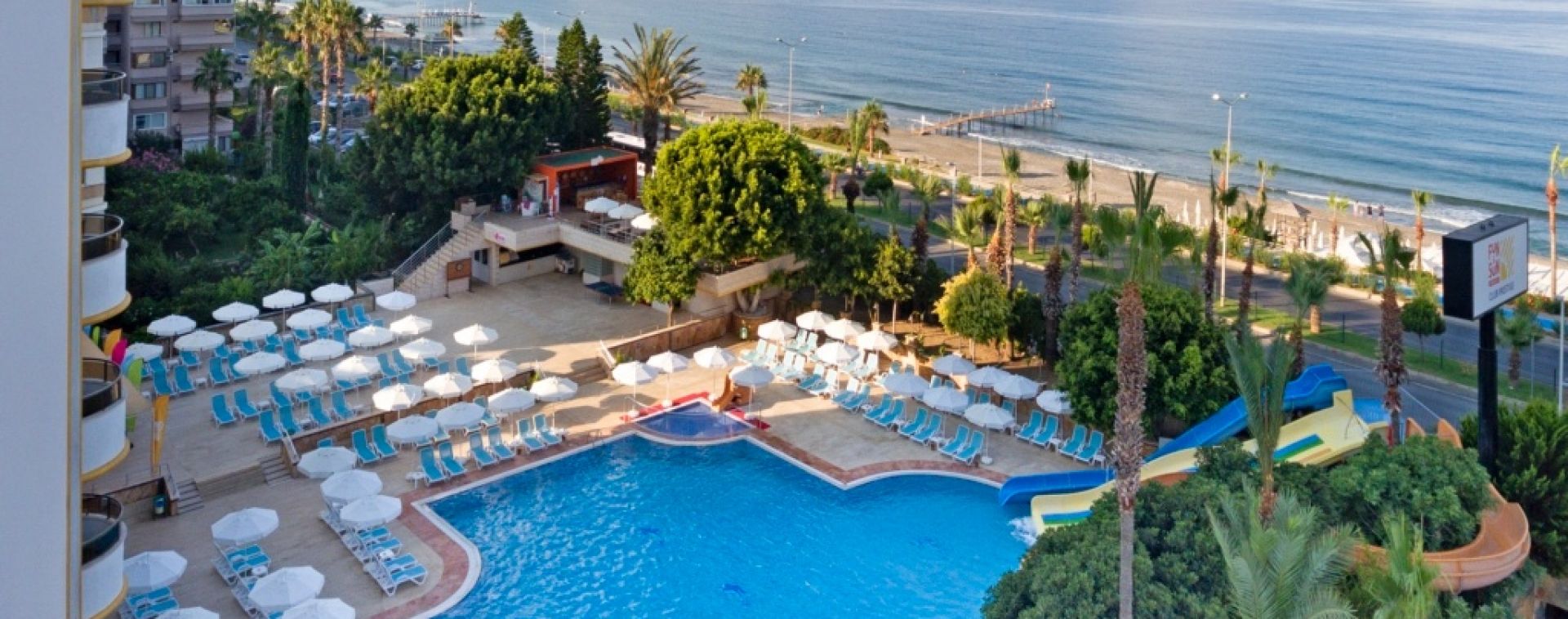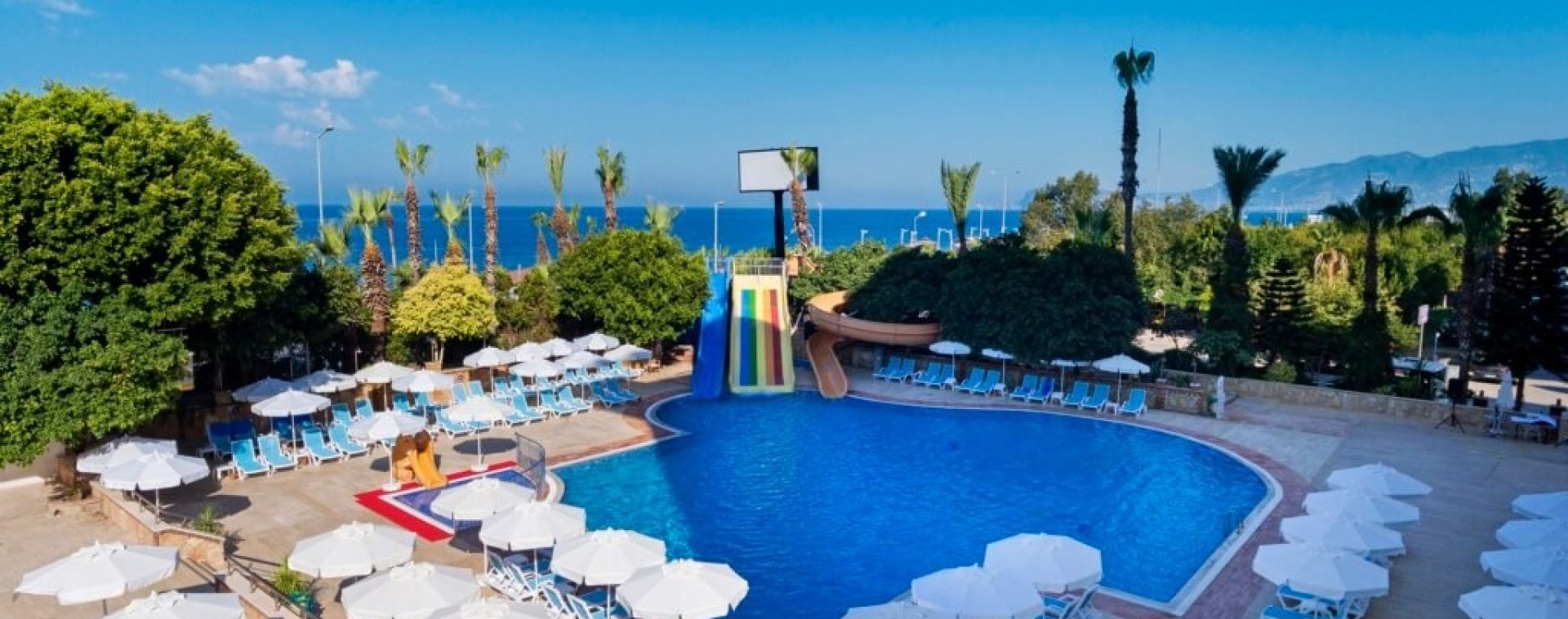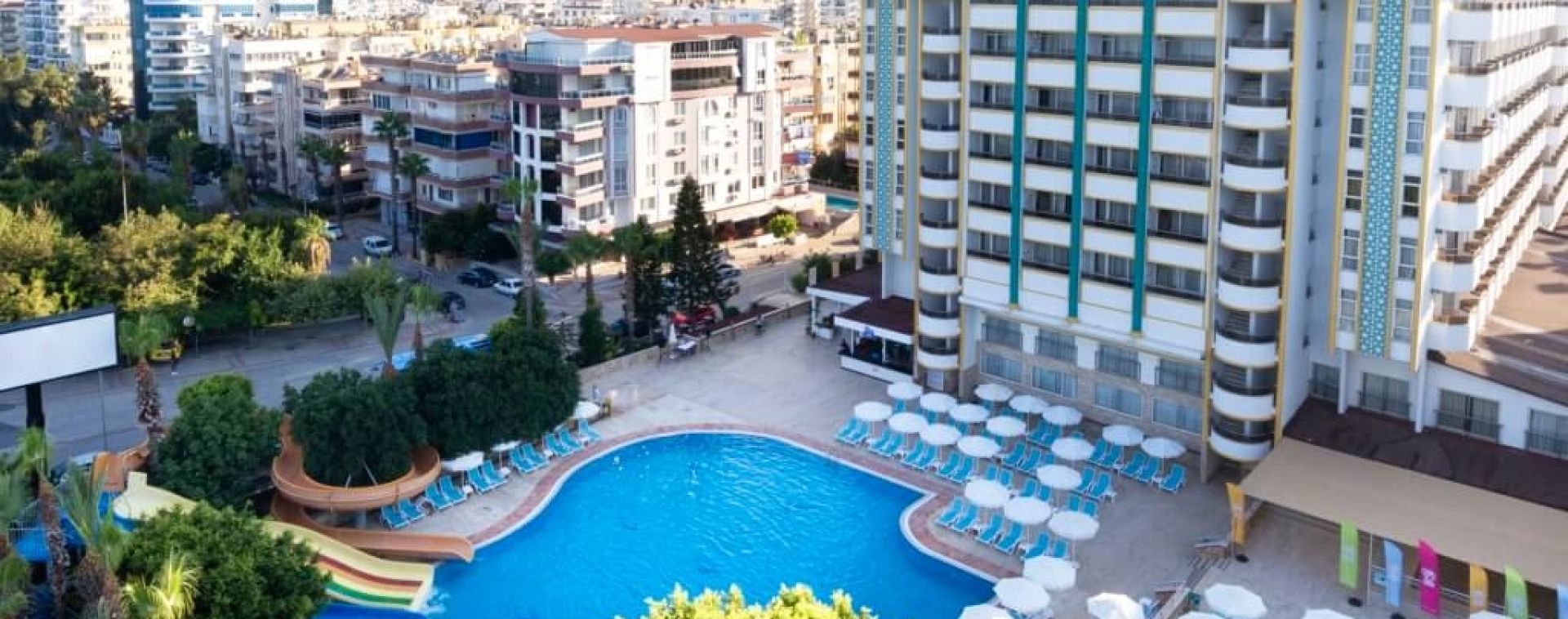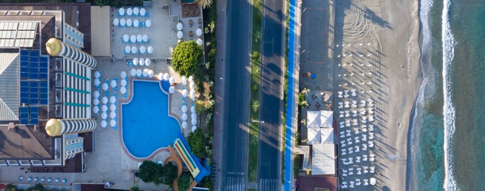 Намира се на 135 км от летище Анталия, на 140 км от центъра на Анталия, на 12 км от центъра на Алания, на 50 м от плажа. Обща площ на хотела 13.100 м2.