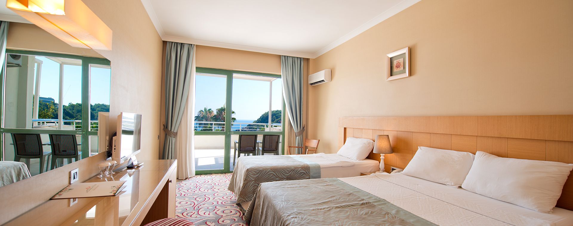 Хотелът разполога с 233 стаи. Всички стаи са оборудвани с климатик, телевизор, телефон, баня с душ, сешоар, минибар (ежедневно зареждане с вода), сейф, балкон или тераса. Почистване на стаите - всеки ден, смяна на спално бельо и хавлиени кърпи - 3 пъти седмично.