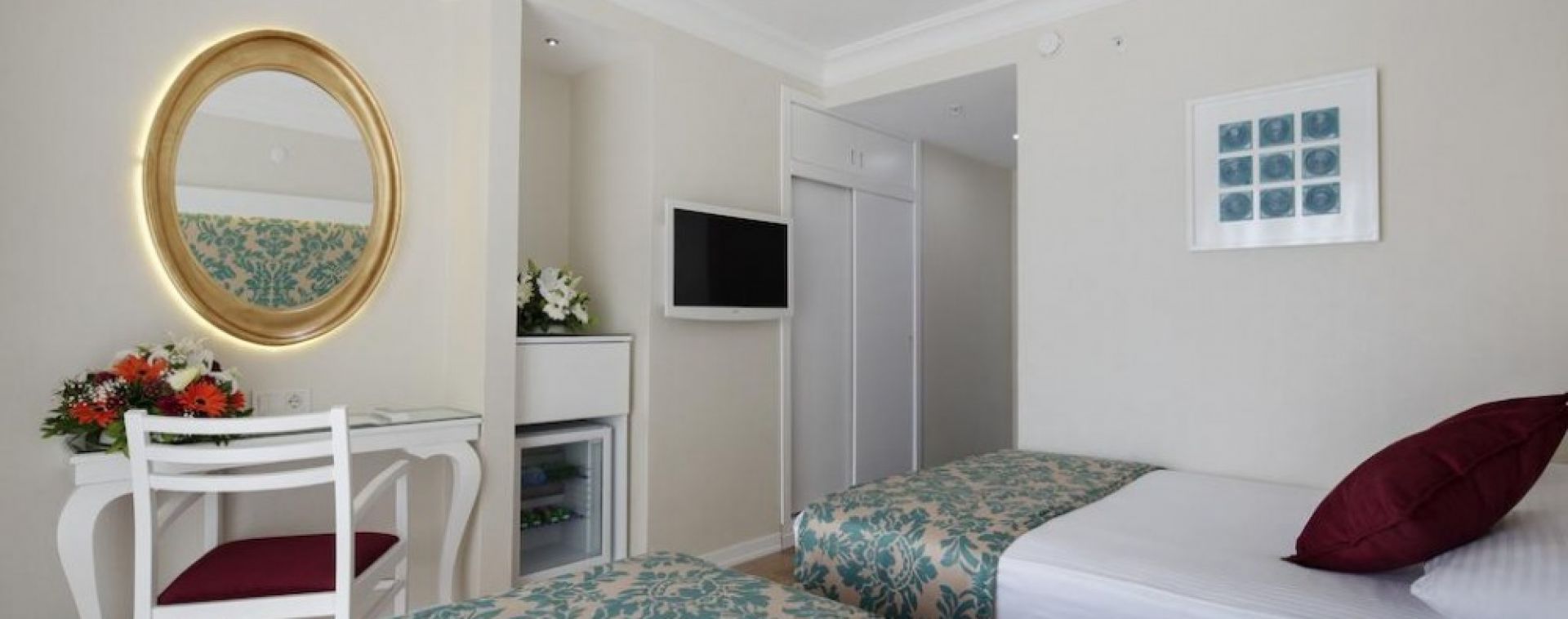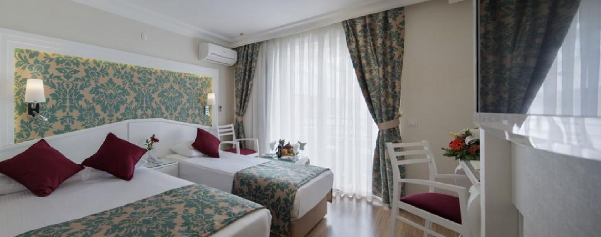 Хотелът разполага с общо 107 стаи, разположени в една основна сграда, от които 85 Standard room (16 м2), Child friendly стаи (в тях две деца се настаняват безплатно – 16 м2), 20 Connected room (32 м2), 2 Honeymoon room (16 м2). Всички стаи са оборудвани с климатик, телевизор, телефон, баня с душ/вана, сешоар, минибар (срещу заплащане), сейф (срещу заплащане). Почистване на стаите всеки ден - смяна на спалното бельо и кърпите - 2 пъти в седмицата.