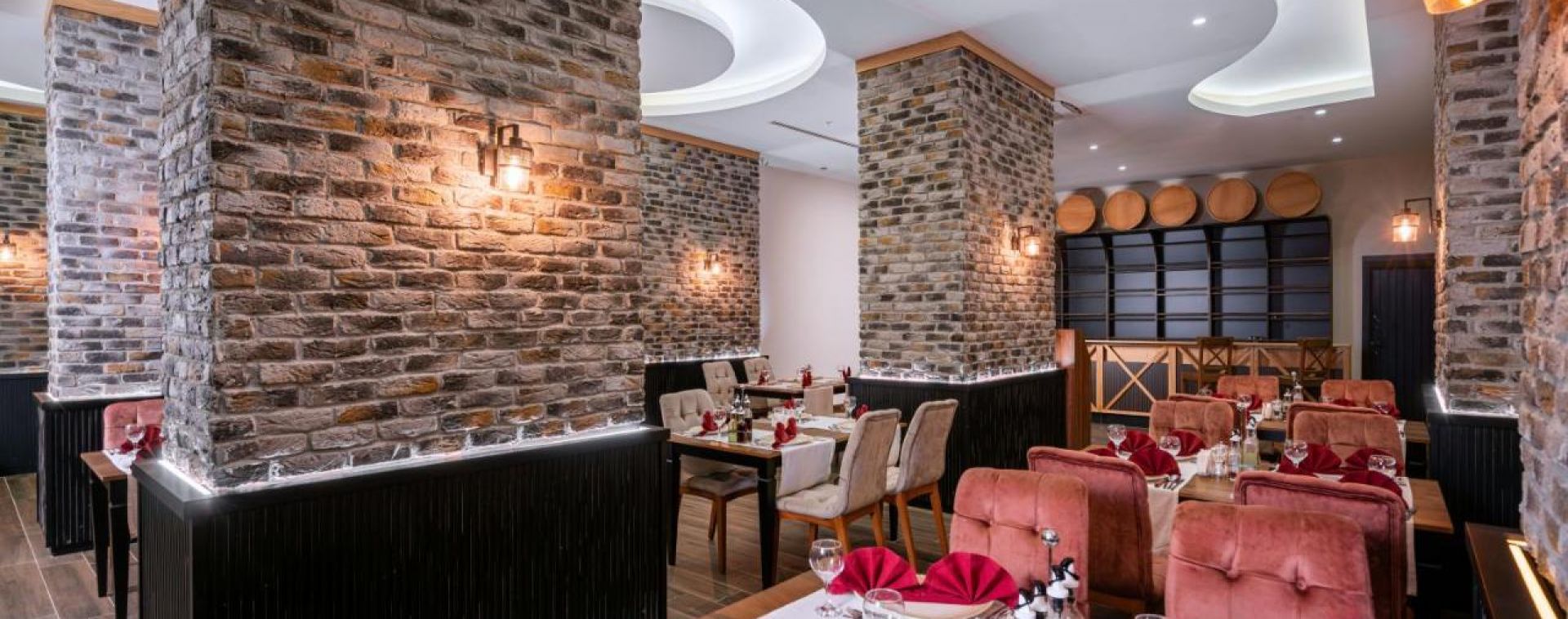 Основен ресторант, а-ла-карт ресторант – интернационален (1 безплатно посещение минимум 7 нощувки), сладкарница, 3 бара, открит и закрит басейн, водни пързалки, СПА център.