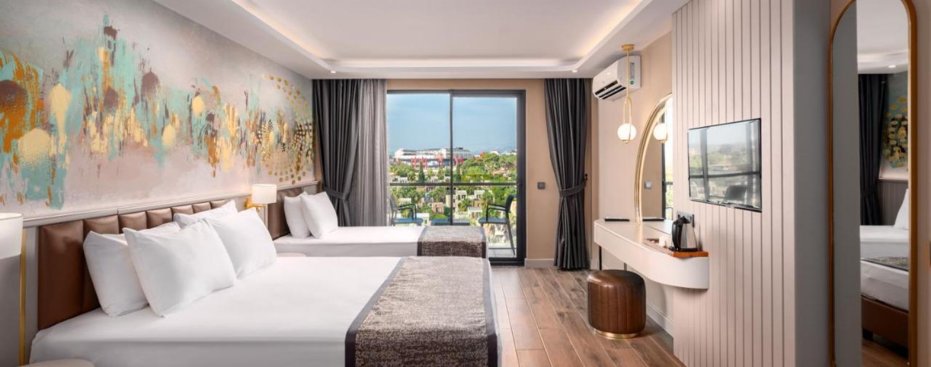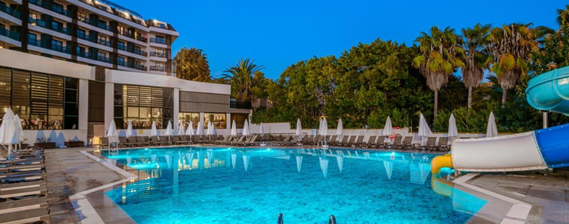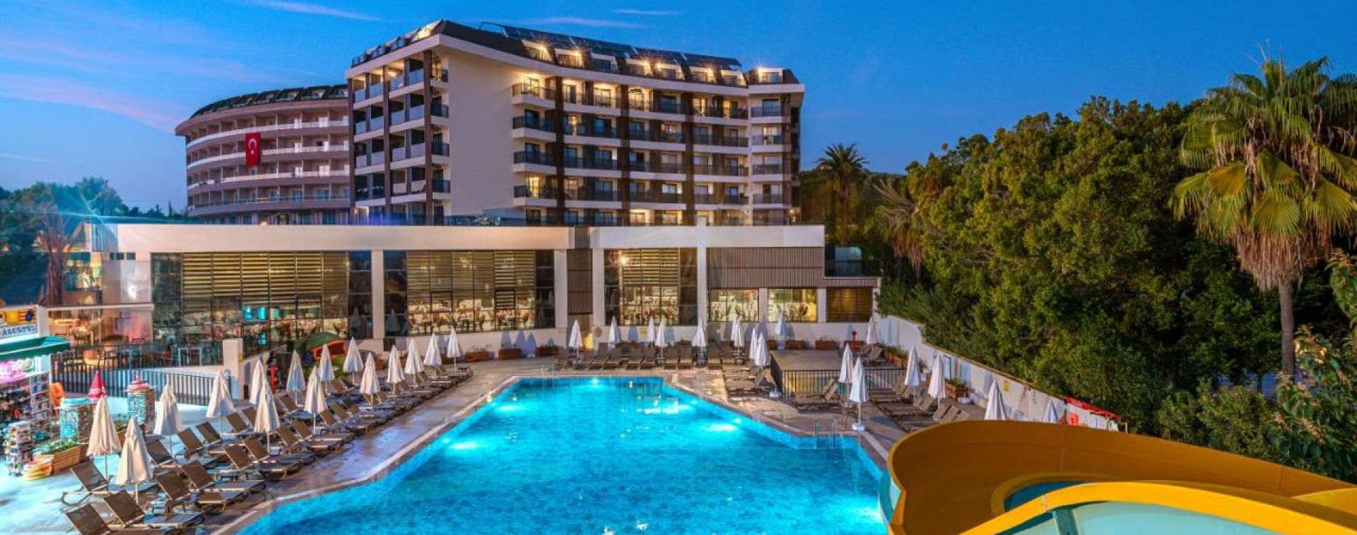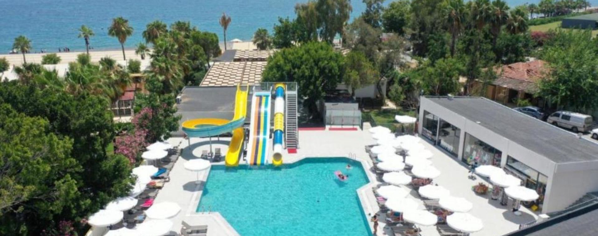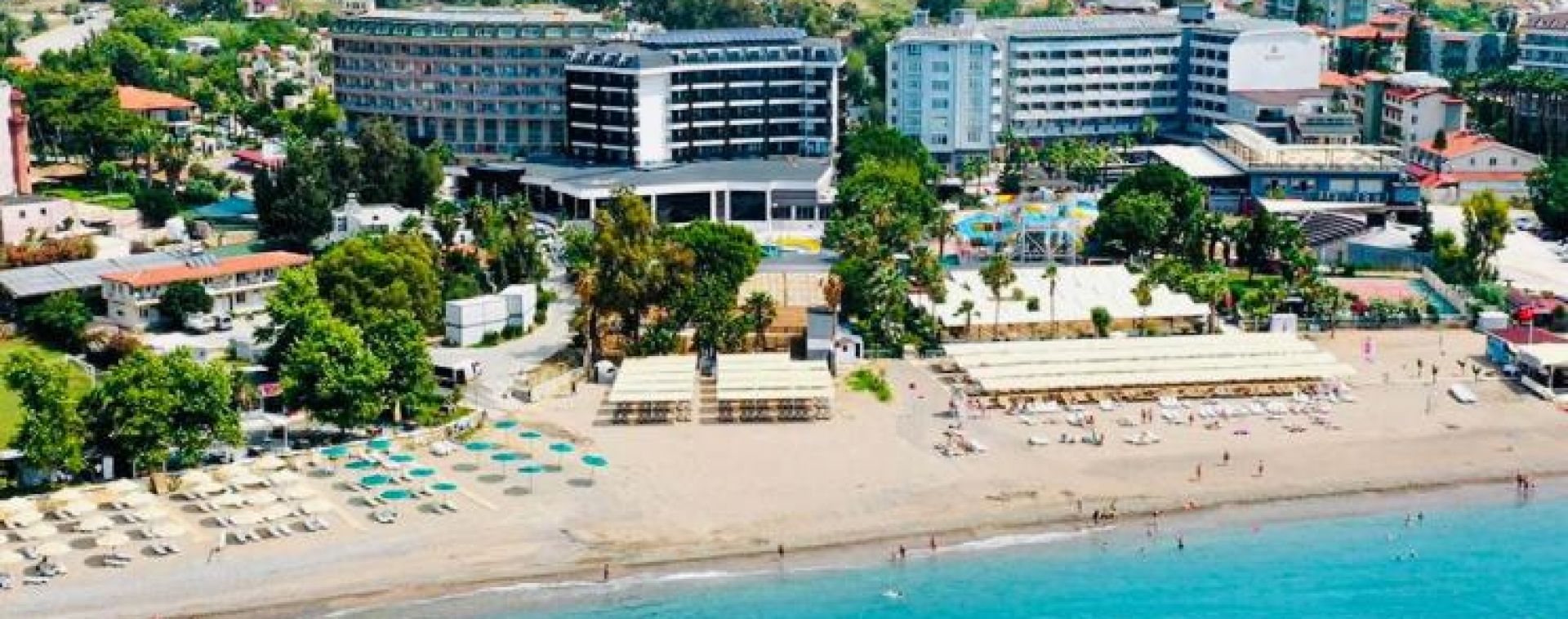 Намира се на 92 км от летище Анталия, на 100 км от центъра на Анталия, на 32 км от центъра на Алания, на 100м от брега на морето, на обща площ от 6 250 м2. Реновиран 2023 г.