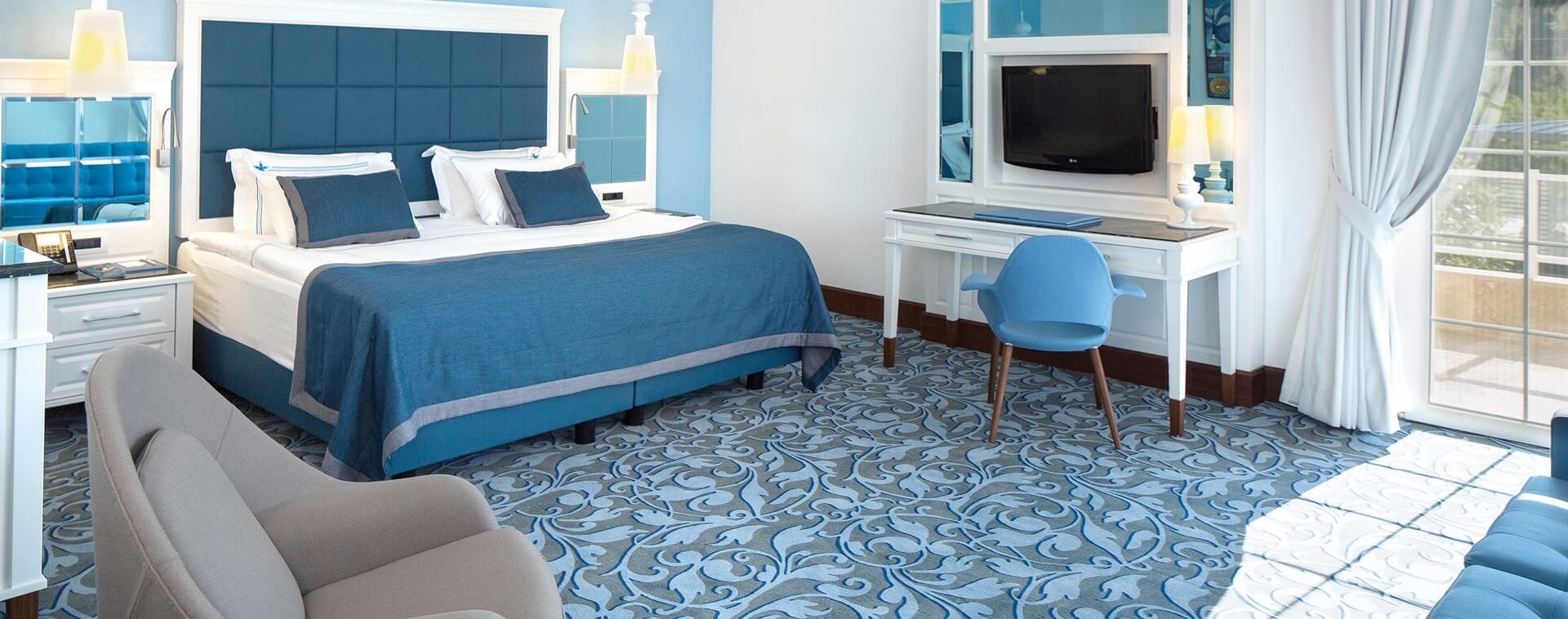 Хотелът разполага с общо 33 двуетажни вили, всички с вход към общия басейн с морска вода, 26 Azure Villas (с 2 спални помещения), 7 Azure Villas (с 3 спални помещения). Всички стаи са оборудвани с климатик, телевизор, телефон, 2 бани с вана/душ, сешоар, халат и пантофи, ютия, минибар (безплатен), сейф (срещу депозит), кафе Lavazza/чай. Почистване на стаите - всеки ден, смяна на спално бельо и кърпи - 3 пъти седмично.
