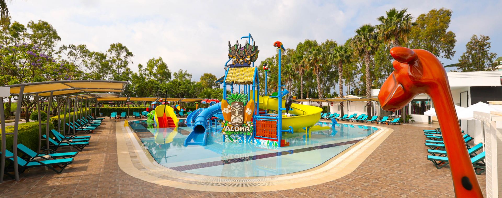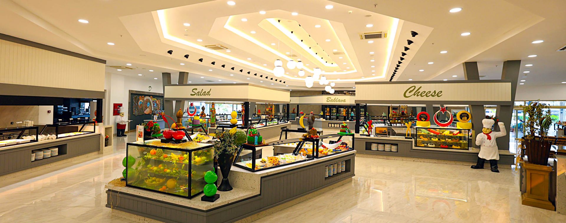 Основен ресторант, 4 a la carte ресторанта (турски и италиански - с предварително записване, за целия престой се полага 1 посещение на едни от тях - безплатно; рибен и мексикански - платени), 8 бара (едни от тях работи 24 часа), сладкарница, дискотека, 2 открити и 1 закрит басейн, 3 водни пързалки, Спа център, магазини, фризьорски салон, лекарски кабинет, пералня.