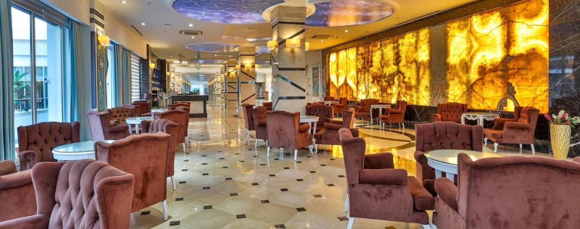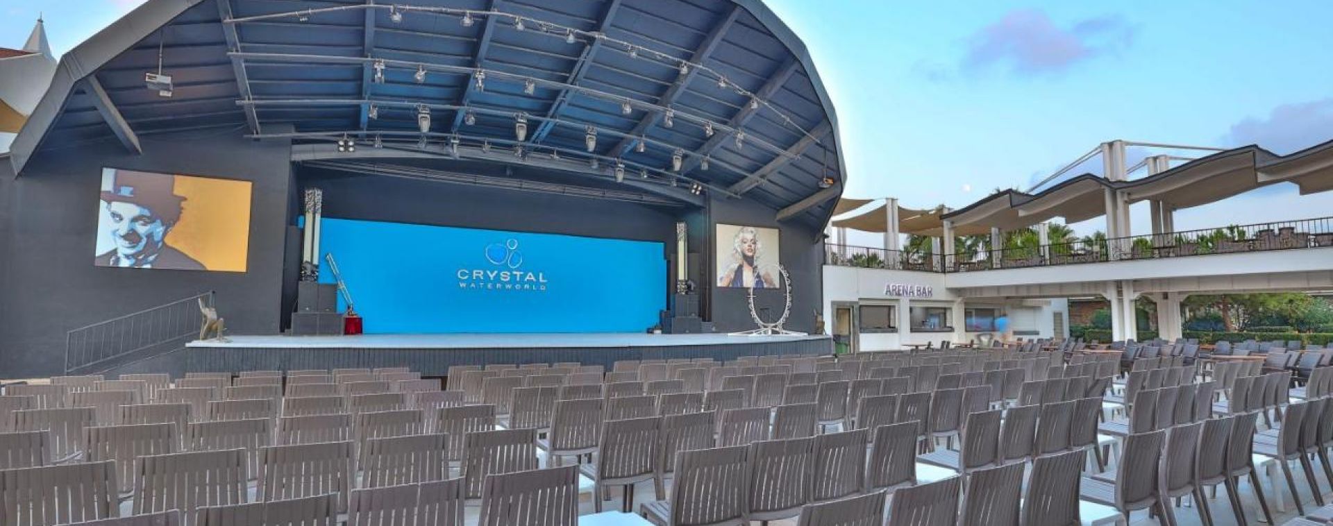 Основен ресторант, 5 a - лa - карт ресторанта ( по едно безплатно посещение по време на престоя ), 7 бара, магазини, Интернет - кафе, безжичен интернет на територията на хотела ( безплатно ), 2 открити басейна, закрит басейн, аква парк, 5 водни пързалки. За децата: мини клуб(4-12г.), 2 детски басейна. Безплатни услуги: турска баня, сауна, парна баня, джакузи, тенис корт, баскетбол, плажен волейбол, фитнес, тенис на маса, водна топка, водна аеробика, дартс, мини голф, кино. Платени услуги: масаж, пилинг, билярд, боулинг, видео игри, джага, осветление на тенис корта, тенис ракети и топки под наем, кану, водно колело, сърф (с лиценз), голф, водни ски, банан, фризьорски салон, СПА-център
