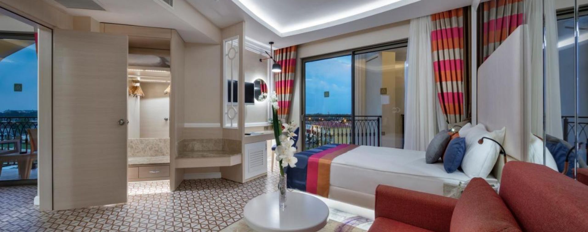 Хотелът се намира на 34 км. от летище Анталия, на 42 км. от центъра на гр.Анталия, на 2км. от делфинариум и аквапарк Troy. Откриване на 15.03 2017 г. с обща площ от 100 000 м2.