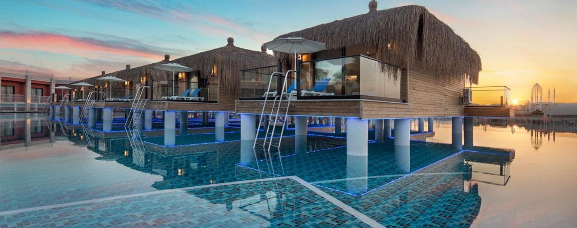 Основен ресторант, 3 а - ла - карт ресторанта (с предварителна резервация), 10 бара, 9 открити басейна,1 закрит басейн, водни пързалки, магазини, SPA център, дискотека, кино, 11 конферентни зали, паркинг.