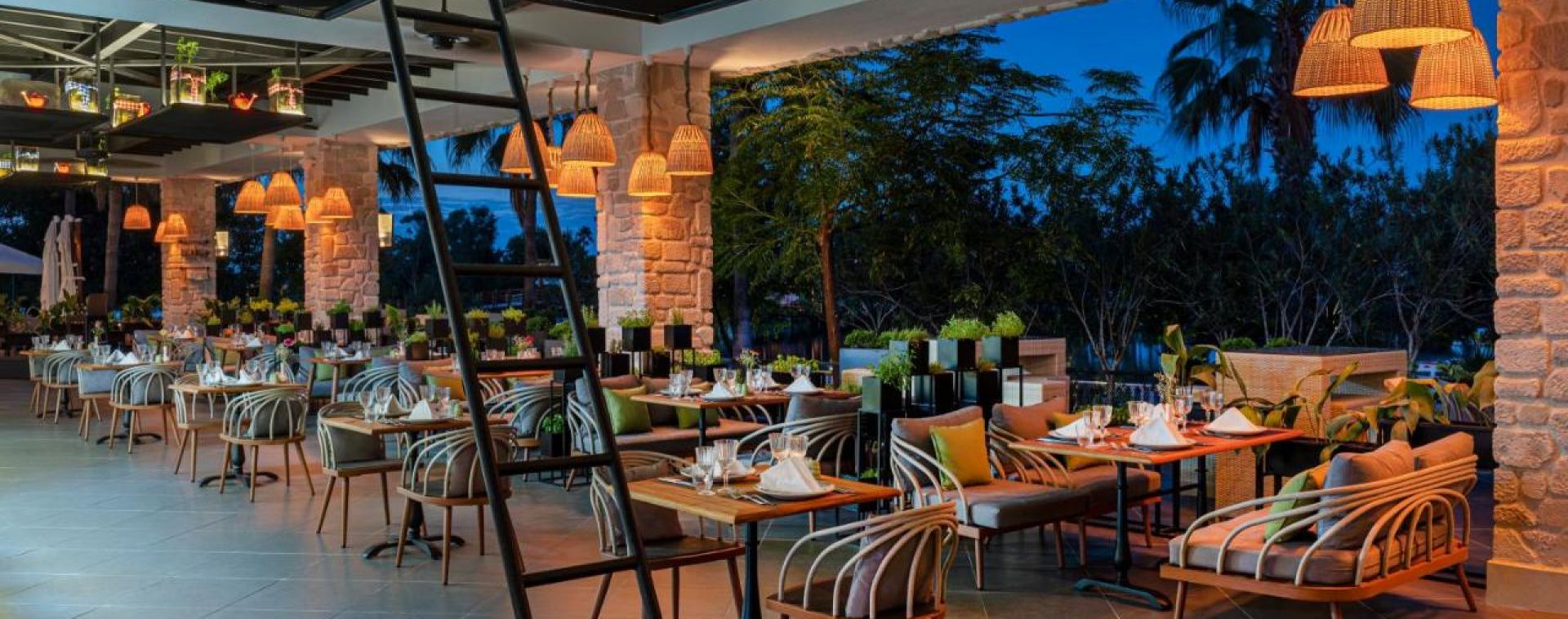 Основен ресторант, 5 а-ла-карт ресторанта (7/24 ресторант, снек а-ла-карт – безплатно; турски, италиански, рибен – 1 безплатно посещение на 1 от ресторантите при минимум 7 нощувки, с предварителна резервация), сладкарница, 9 бара (24/7 бар, 3 лоби бара, 2 бар при басейните, бар на плажа, кафе бар, витамин бар), 4 открити басейна, 1 закрит отопляем басейн, аквапарк с 5 водни пързалки за възрастни, СПА център, козметичен салон, 5 конферентни зали, магазини, паркинг.