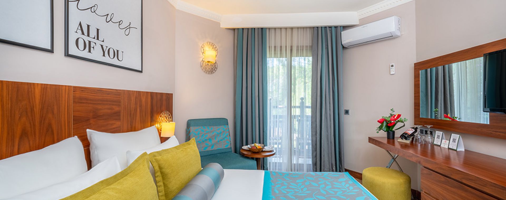 Всички стаи са оборудвани с климатик, телевизор, телефон, баня с душ, сешоар, сет за чай/кафе, минибар (безплатен), сейф (безплатен), балкон.