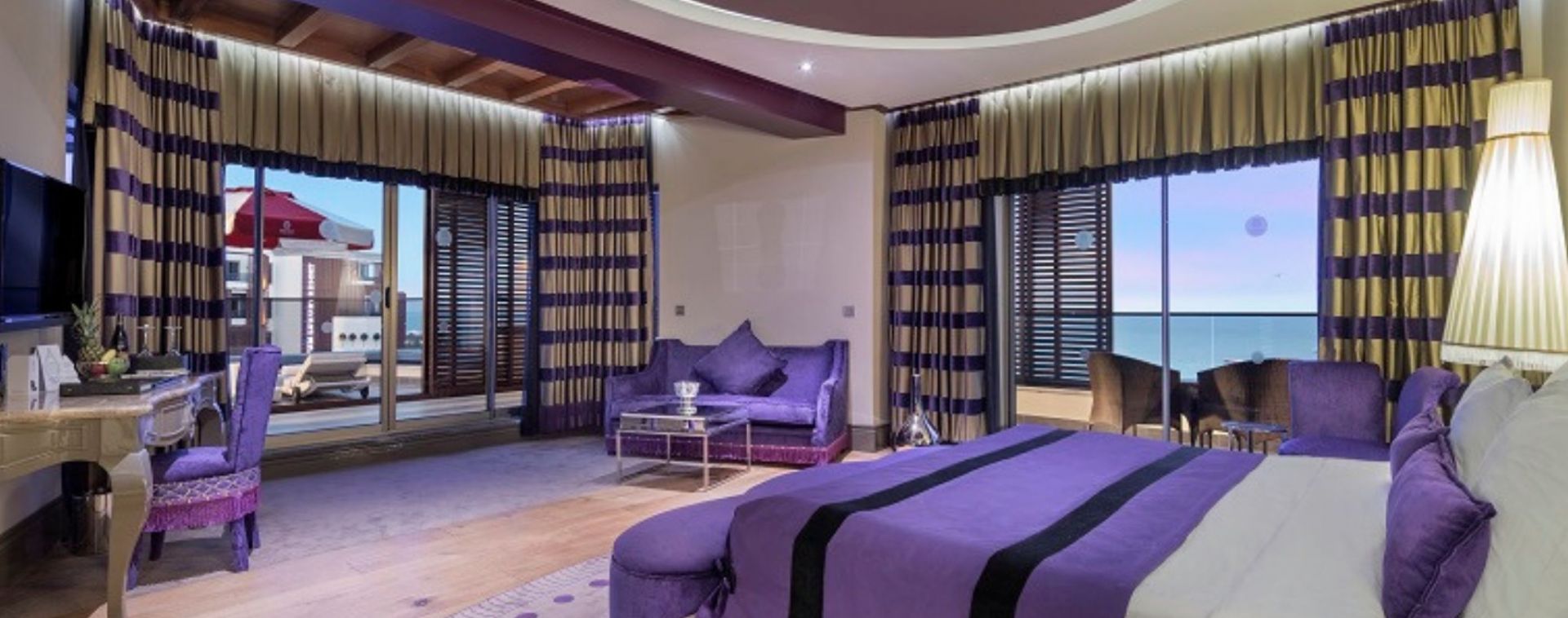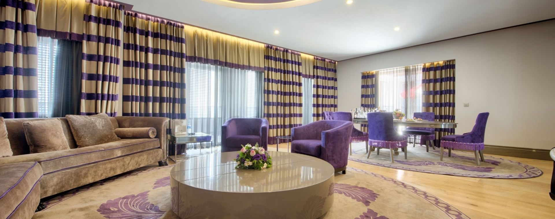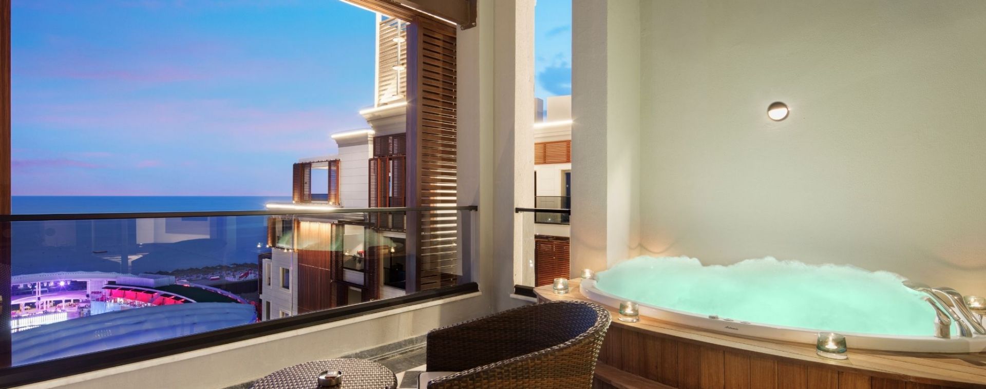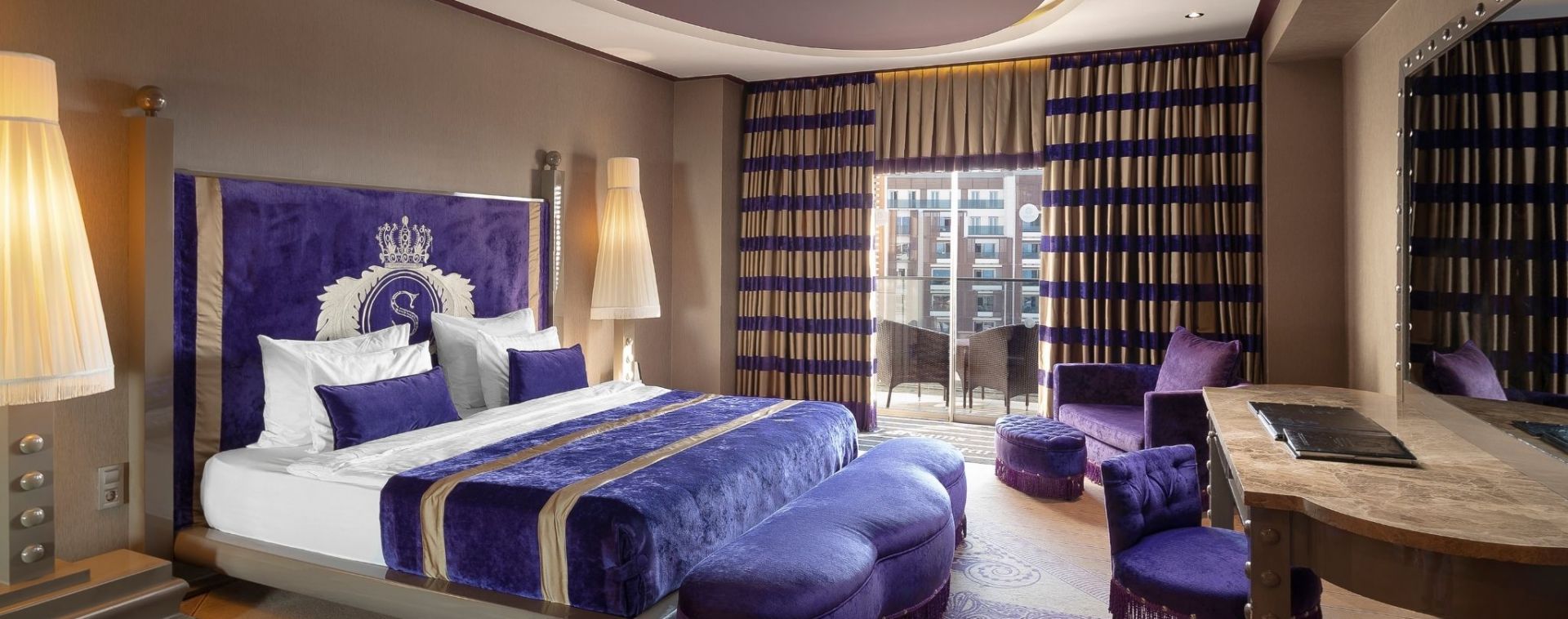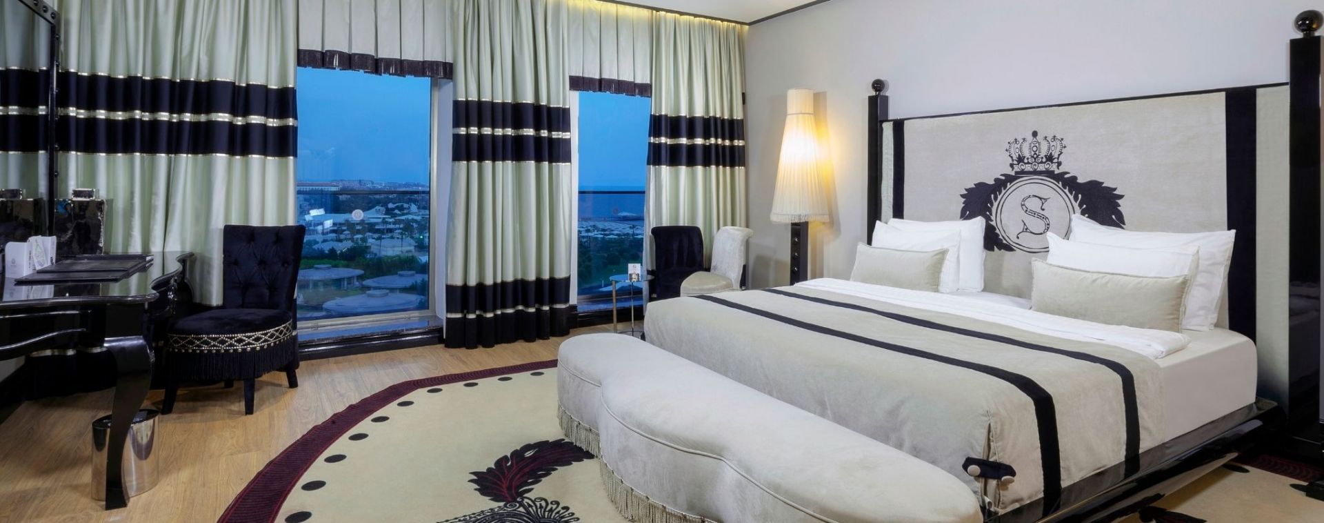 204 Luxury room (стаи с френски балкон - 4 от които за инвалиди – 45-62 м2),  55 Deluxe room (70-75 м2),  36 Superior room (с джакузи на балкона - 124 м2), 100 Family room (2 спални, 1 баня 37-43 м2), 8 Suite room (1 спалня, хол, 1 баня - 124 м2), 10 Premium Suite room (1 спалня, хол, 1 баня, джакузи на балкона - 160 м2), 4 Executive Residence Room (2 спални, хол, 1 баня - 186 м2), 2 King Residence Room (2 спални, хол с кът за хранене, 2 бани - 450 м2), 1 Presidential Residence Room (2 спални, хол с кът за хранене, 2 бани - 500 м2).