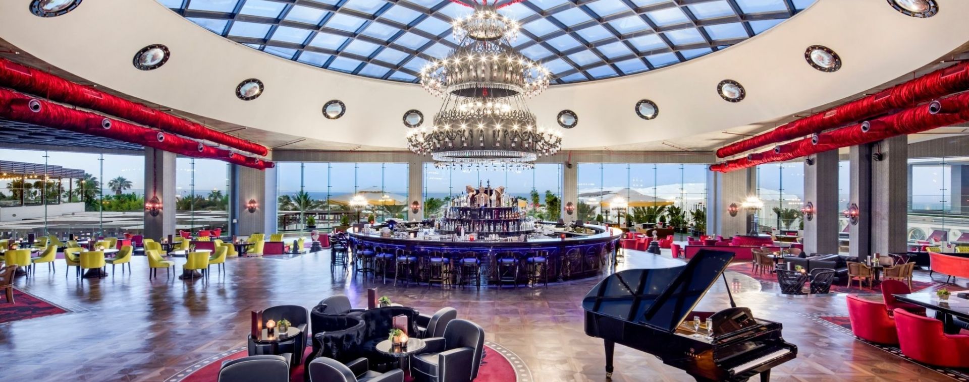 Основен ресторант, ресторант към клубните стаи, 4 а-ла-карт ресторанта (рибен, италиански, барбекю – 1 безплатно посещение на 1 от ресторантите при минимум 7 нощувки), 24/7 интернационален ресторант а-ла-карт, суши бар, сладкарница, снек ресторант, гьозлеме, 11 бара, 4 открити и 1 закрит басейн, аквапарк, увеселителен парк, кино, амфитеатър, жива музика, специални шоу програми, дискотека, СПА център, магазини, 5 конферентни зали, паркинг.