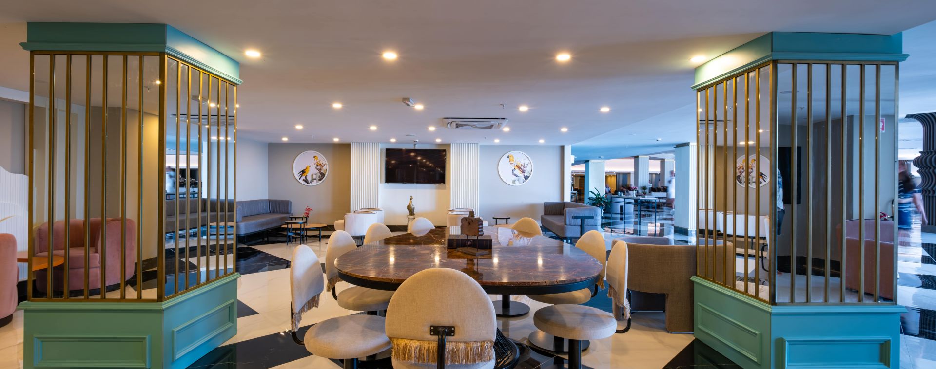 3 основни ресторанта (Gourmet, детски ресторант – IXY Planet,  She & He – в зоната за възрастни), 3 а-ла-карт ресторанта - Thymàri (средиземноморски, 1 безплатно посещение при минимум 5 нощувки), Mazu (азиатски), Apollon (стекхаус) - нужна е резервация за всички а-ла-карт ресторанти, 4 бара (лоби бар, 2 бара при басейните, бар на плажа), Старбъкс кафетерия (над 16-годишна възраст), сладкарница, дискотека, 1 основен открит басейн, басейн в зоната за възрастн фитнес център, СПА център.