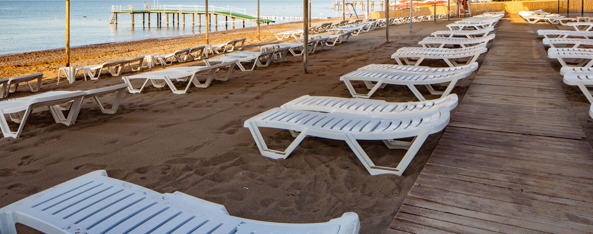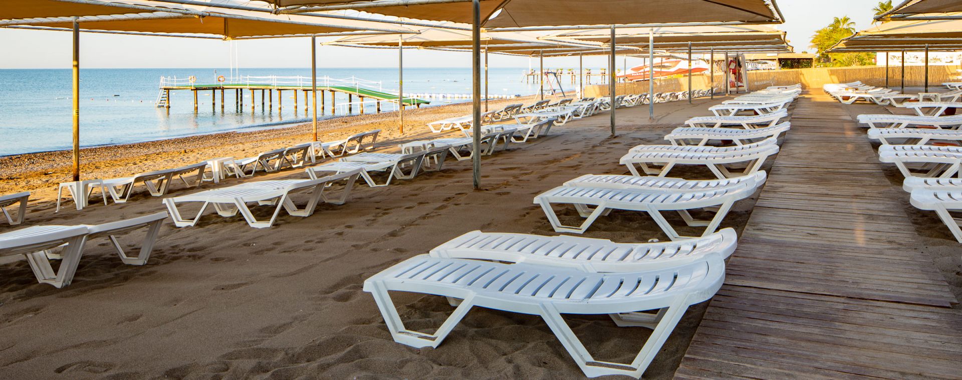 Собствен пясъчно-чакълест плаж. Чадъри, шезлонги, матраци н а плажа и при басейна– безплатно.
