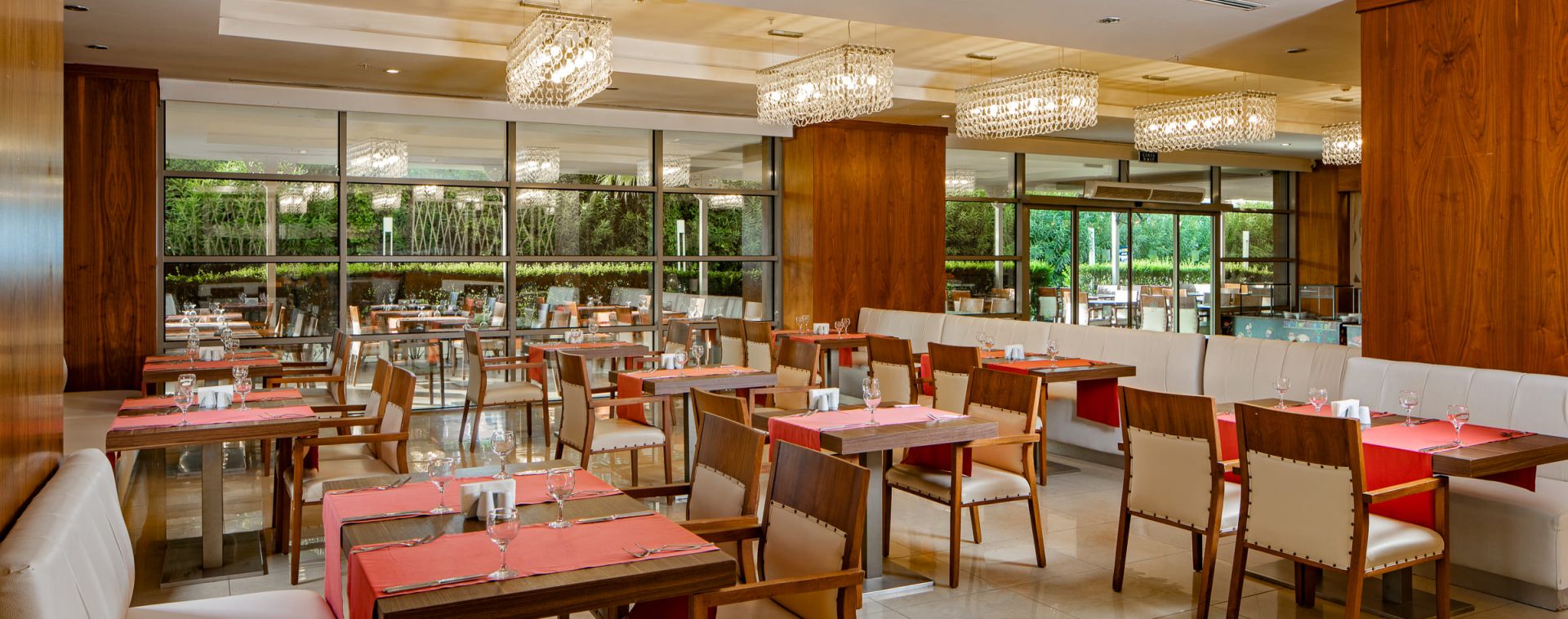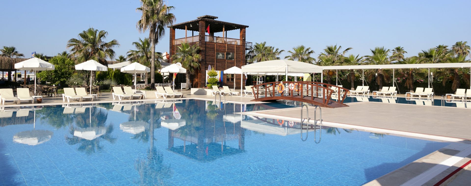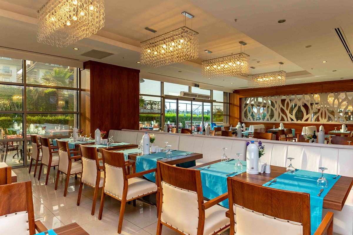 Основен ресторант, 3 бара, конферентна зала, 3 басейна, 4 водни пързалки, тенис на корт, салон за красота , СПА център, лекар, интернет кафе, пране.