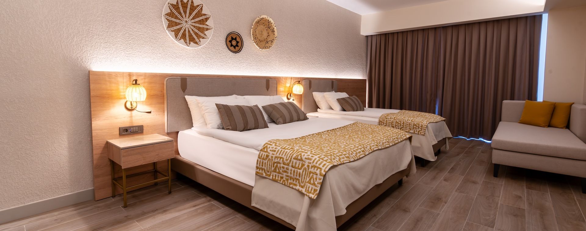 Хотелът разполага с общо 344 стаи, разположени в две 7-етажни сгради, от които 248 Deluxe Rooms (26 m²), 20 Deluxe Jacuzzi Rooms (разполагат с джакузи на балкона - 26 m²), 25 Deluxe Family Rooms (2 отделни спални със свързваща врата, 2 балкона - 47 m²), 22 Deluxe Suite Rooms (1 двойно, 1 единичо легло, 1 дневно легло - 43 m²), 20 Deluxe Swim-Up Rooms (с директен достъп до басейн от терасата - 29 m²), 3 Deluxe Disabled Rooms (пригодени за хора с ограничена подвижност - 26 m²).