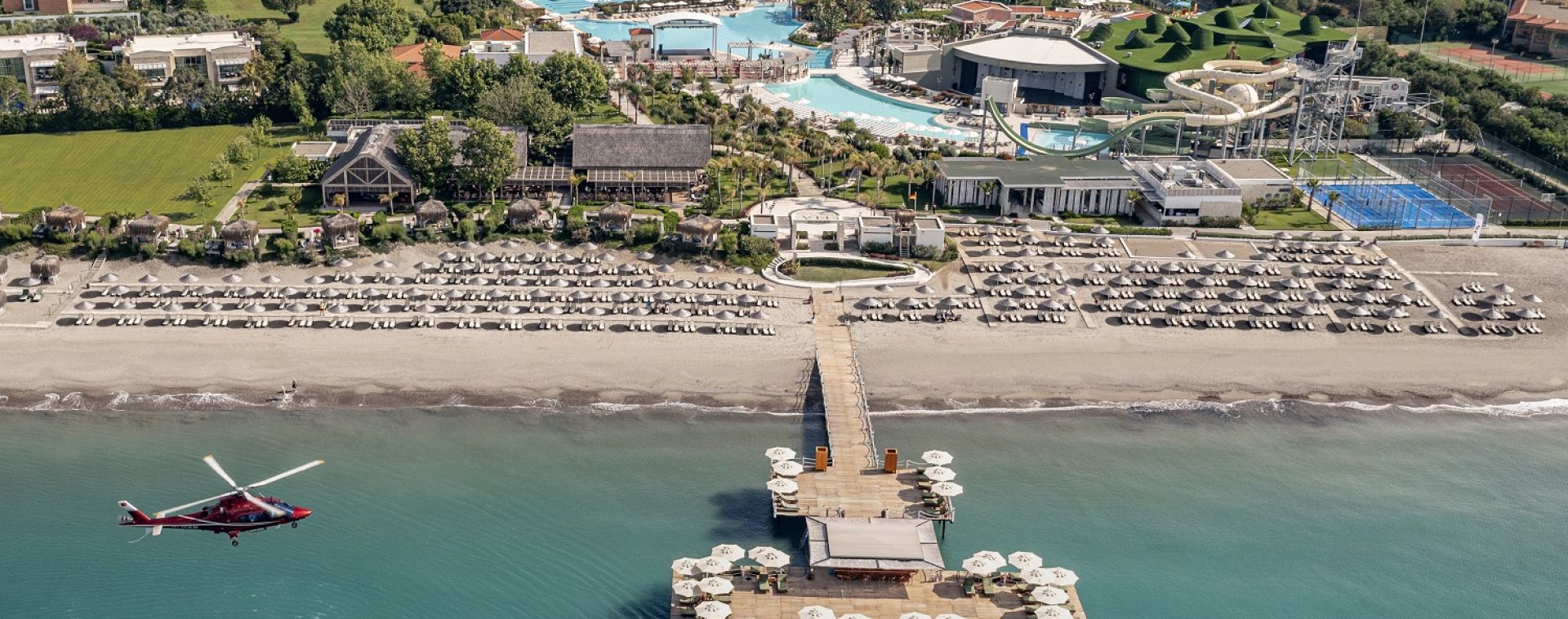 Хотелът се намира на 35 км. от летище Анталия, на 2км. от Белек, на 45 км. от центъра на Анталия, в района на Белек, на брега на морето. Построен през 2007 г. с обща площ от 110 000 м2.