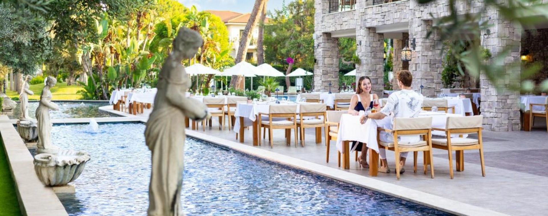 Основен ресторант, 7 а-ла-карт ресторанта (с предварителна резервация), 12 бара, дискотека, 3 открити и 2 закрити басейна, аквапарк с 5 водни пързалки, магазини, Спа - център, амфитеатър, кино, 8 конферентни зали. За децата: Детски ресторант, детска площадка, бебешки клуб (1-2 г.), мини клуб (3-7 г.), джуниър клуб (8-12 г.), тийн клуб (13-17 г.), 3 детски басейна, парк, детска дискотека. Безплатни услуги: Турска баня, сауна, фитнес, дартс, билярд, тенис на маса, тенис на корт, плажен волейбол, баскетбол, футбол, аеробика, мини-голф, безмоторни водни спортове, уроци по танци, кино, анимация, интернет. Платени услуги: Масажи, козметични услуги, фризьор, магазини, боулинг, видеоигри, арт студио, лекар, моторни водни спортове, уроци по голф, уроци по тенис, осветление за тенис кортовете.